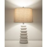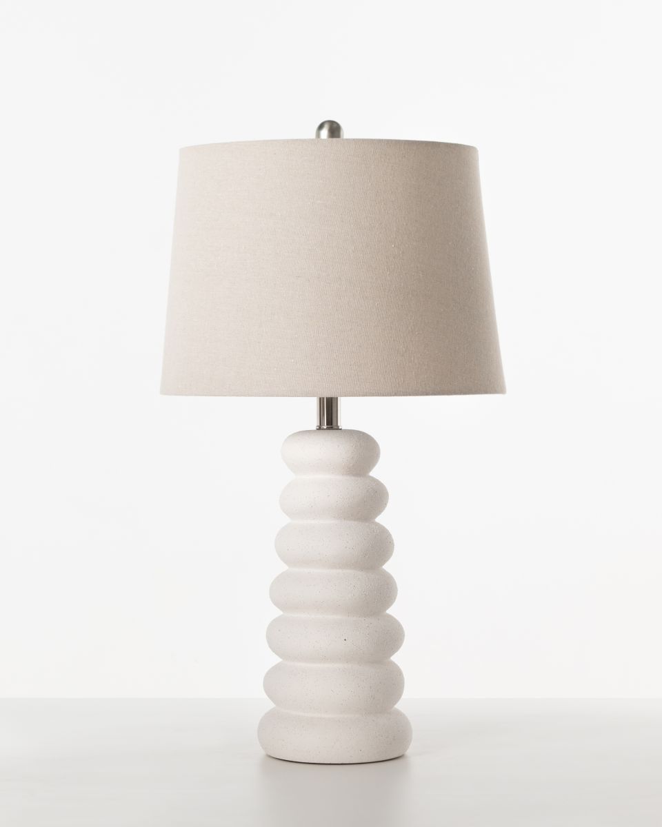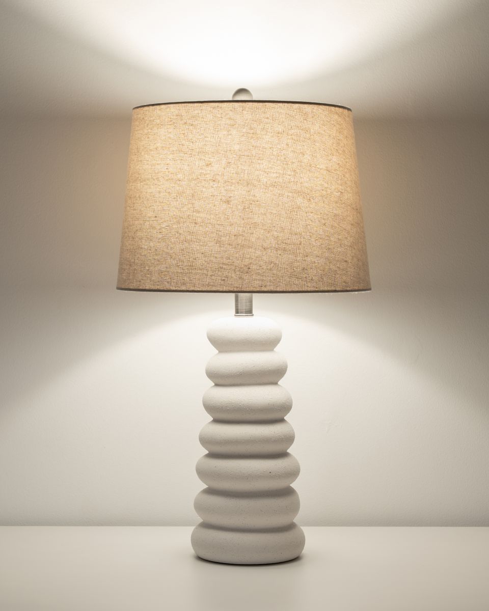 For an organic, contemporary touch, meet the Stonehaven Lamp. The sculptural, ceramic base balances organic form and clean, modern aesthetics. The textured base and linen shade make this piece ideal for adding depth and visual interest to a variety of interior styles. Perfect for larger bedsides, sideboards, consoles and side tables, it serves as a functional and statement decorative piece.