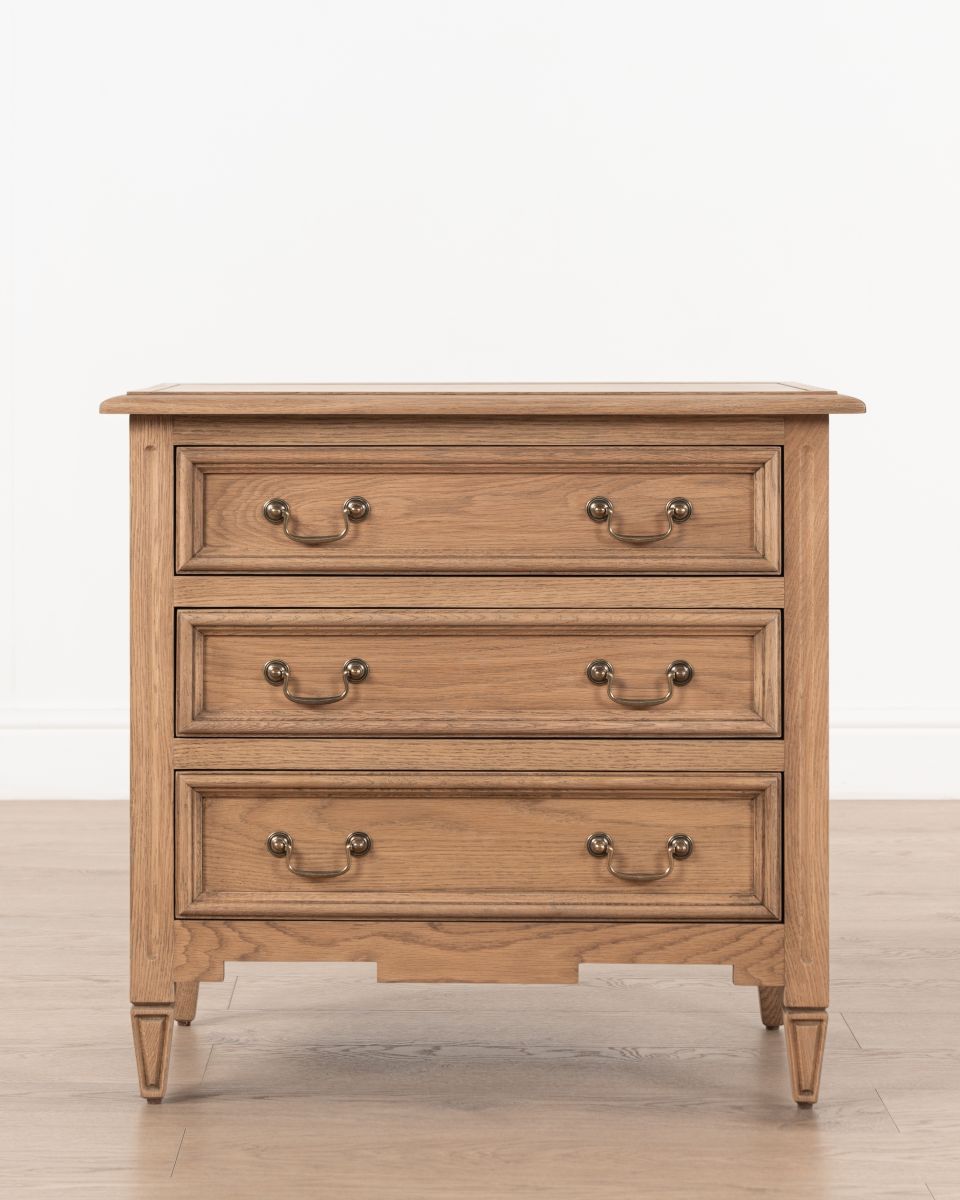 This 3 drawer Bordeaux pedestal from The French collection is a perfect blend of classic French design and modern innovation. Crafted exclusively at our Cape Town workshop, this piece is a testament to our commitment to quality and craftsmanship. The French collection draws inspiration from the elegant aesthetic of 17th-century French design. With their traditional charm and contemporary appeal, our Bordeaux pedestals are a versatile addition to any living space.