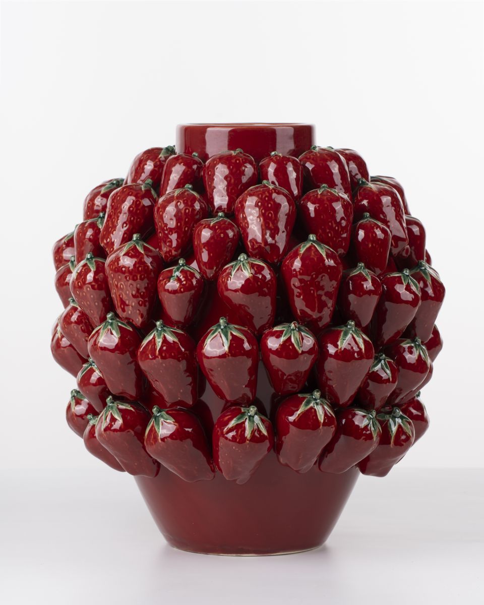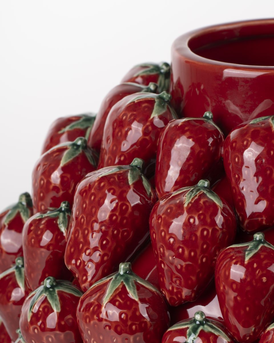 - Decorative ceramic vase with hand-sculpted strawberry detailing