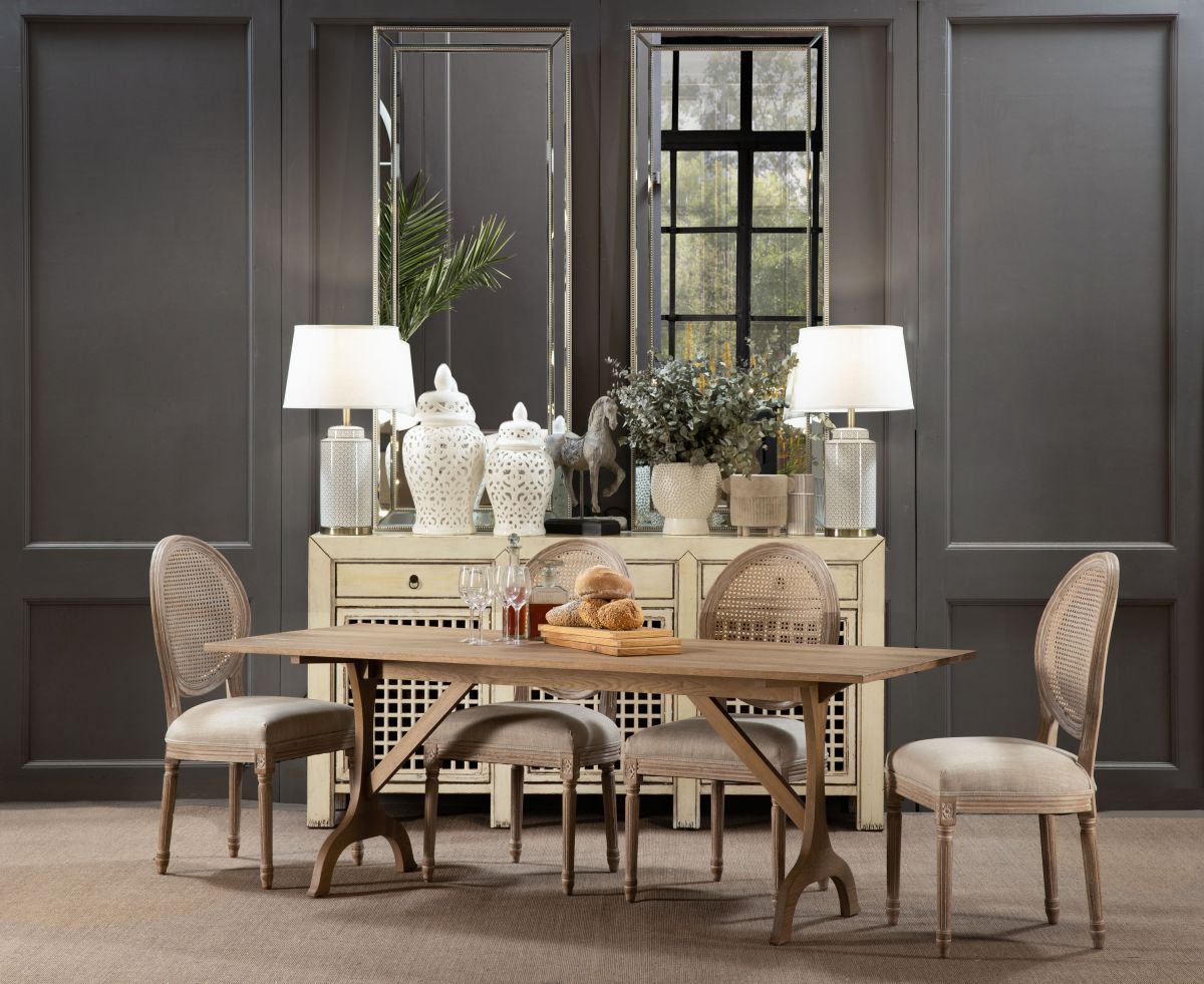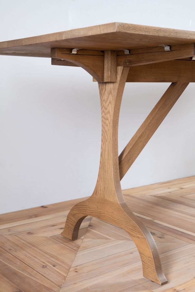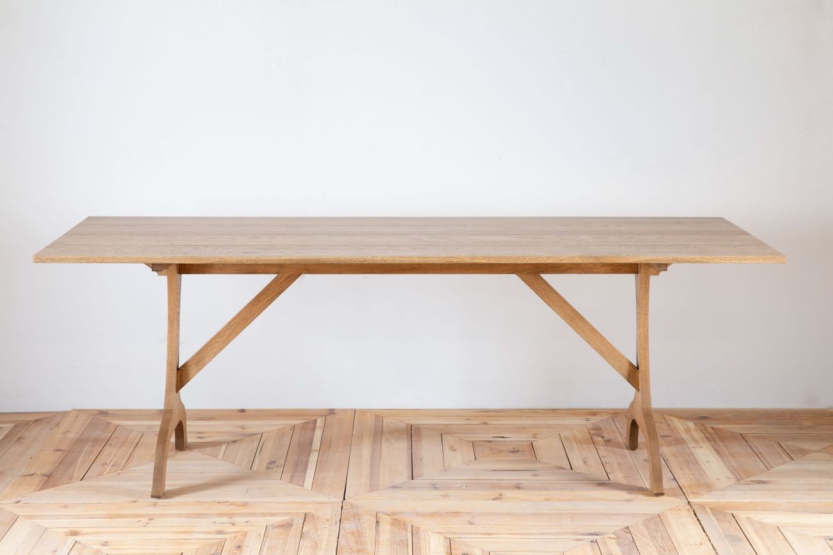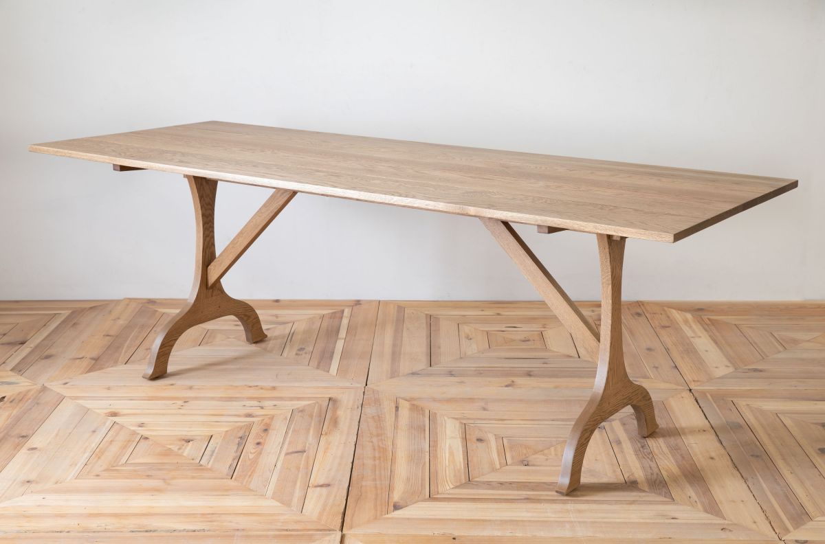 Pared down design and masterful joinery techniques harmonise with the fine woodgrain of Oak in the Whittaker Trestle Dining Table to achieve a triumphantly contemporary classic look.