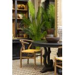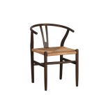 Timeless elegance meets comfort. Crafted with a sleek dark wood frame, this chair is a stunning addition to any space. The organic curves and rich tones of the wood create a harmonious design. Its woven seat and wishbone-shaped backrest provide both style and support. Built to last, our Wishbone dining chair from our Ebony Collection is perfect for everyday use and complements a variety of interior styles. Elevate your dining experience with the Wishbone Dining Chair.