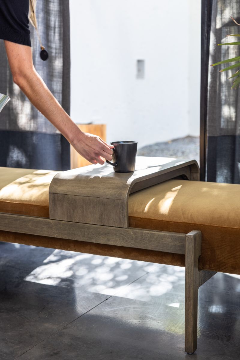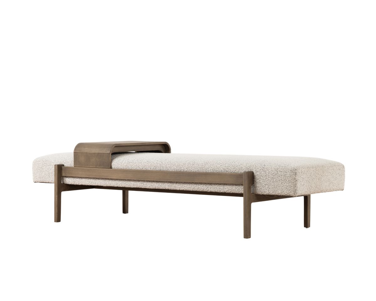 The Arabel Daybed from our Ebony Collection pays homage to Mid-Century design with its refined simplicity and functional elegance. Clean lines and a low, sculptural frame in rich timber create a timeless silhouette, while the upholstered seat provides both comfort and visual warmth.
