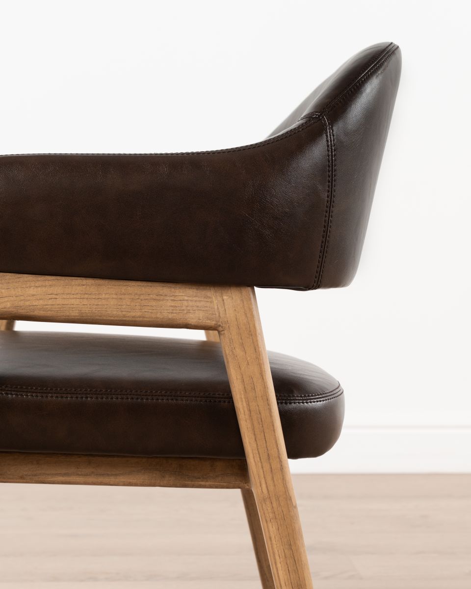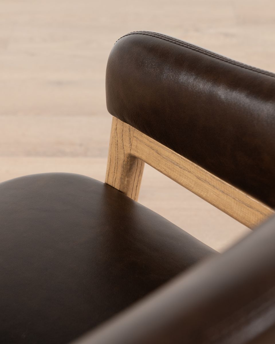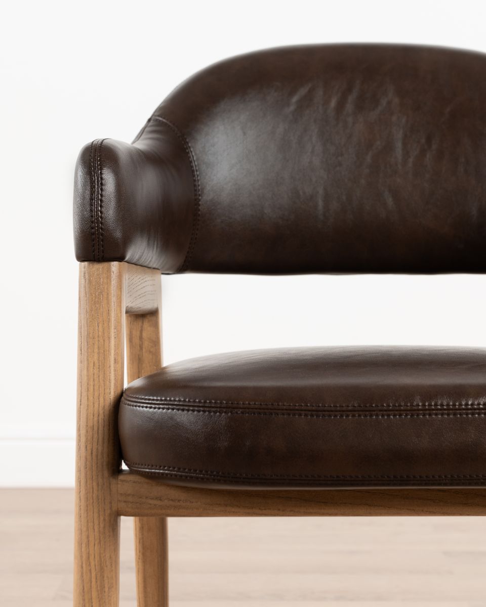 The Mali carver chair from our Ebony collection is crafted with nettle wood legs and frame. The seat is upholstered in regenerated leather, offering a sleek look without compromising on durability. Designed for those who love to entertain, the Mali carver chair combines practicality with plush comfort, perfect for those long dinner parties.
