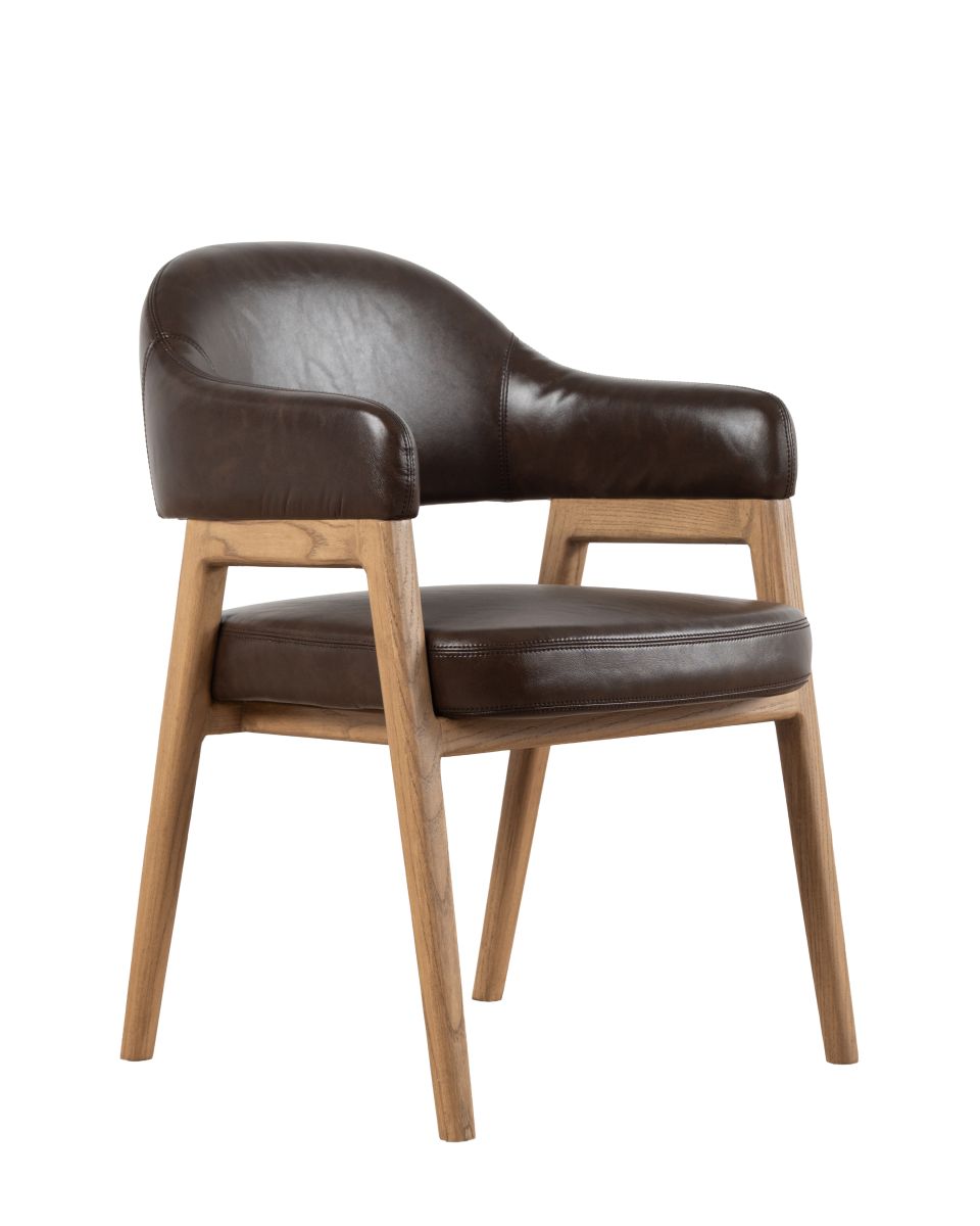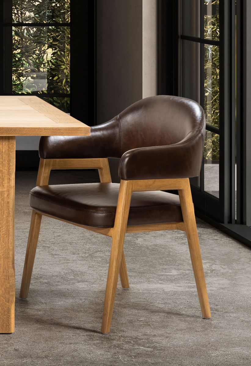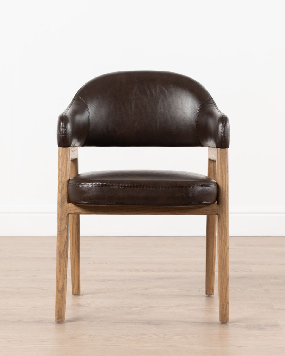The Mali carver chair from our Ebony collection is crafted with nettle wood legs and frame. The seat is upholstered in regenerated leather, offering a sleek look without compromising on durability. Designed for those who love to entertain, the Mali carver chair combines practicality with plush comfort, perfect for those long dinner parties.