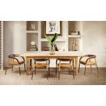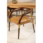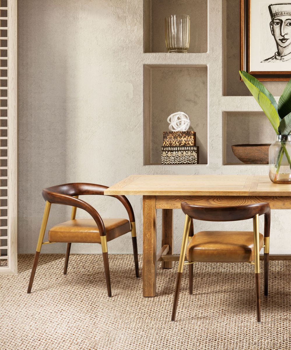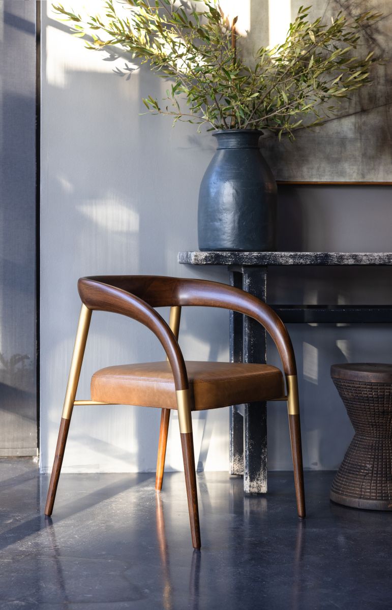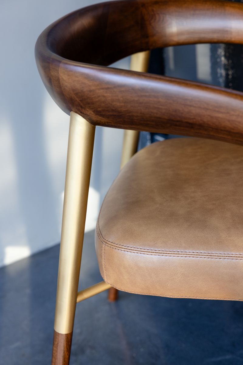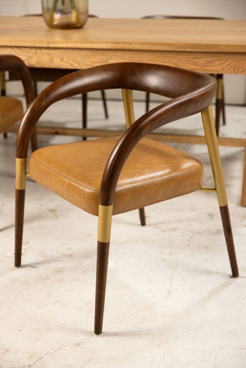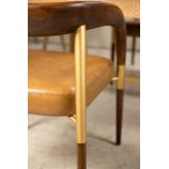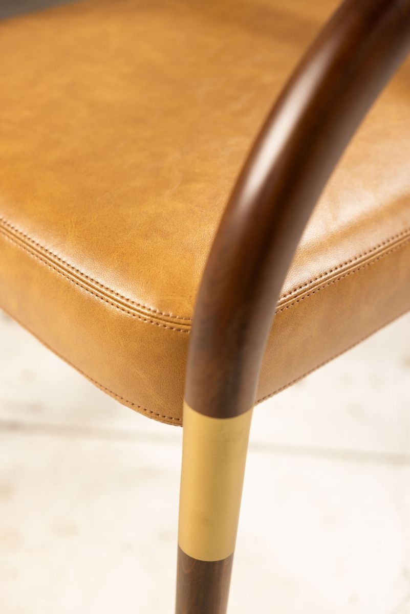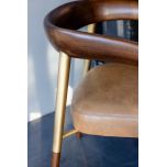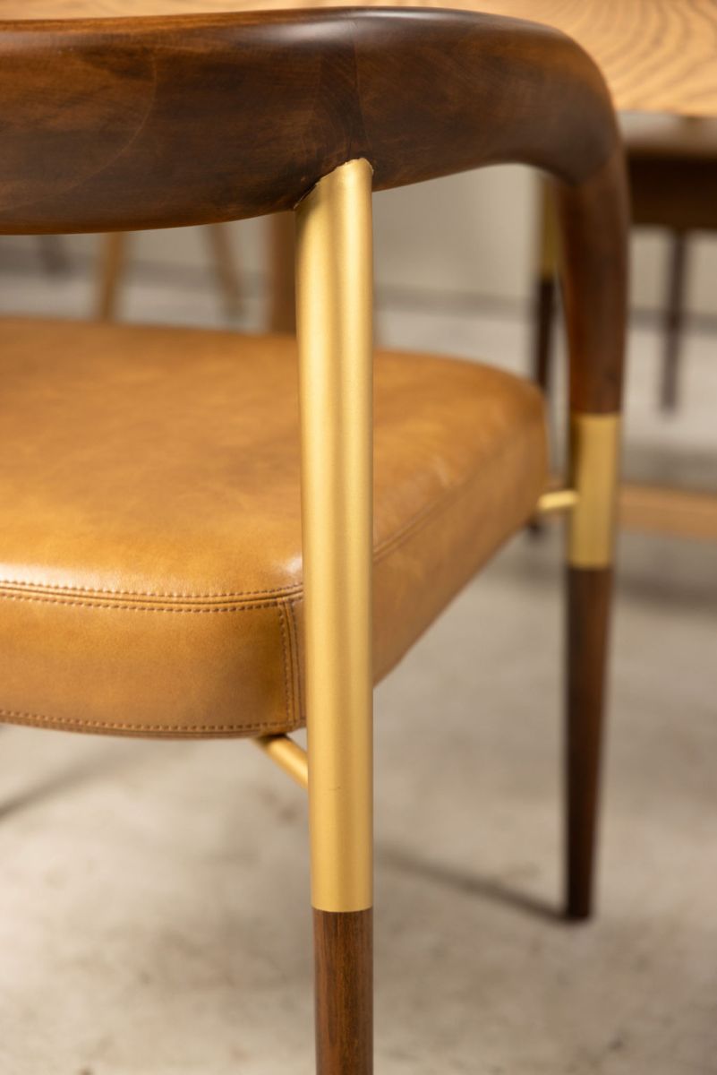 Experience the unparalleled luxury and sustainability of the Massai tub chair from the Ebony collection, where exquisite craftsmanship meets eco-conscious elegance. Featuring regenerated leather and striking gold metal accents, this chair is a modern masterpiece with solid beechwood legs for unmatched durability. Perfectly complementing contemporary dining spaces, the Massai chair elevates any setting with its sophisticated design and commitment to quality.