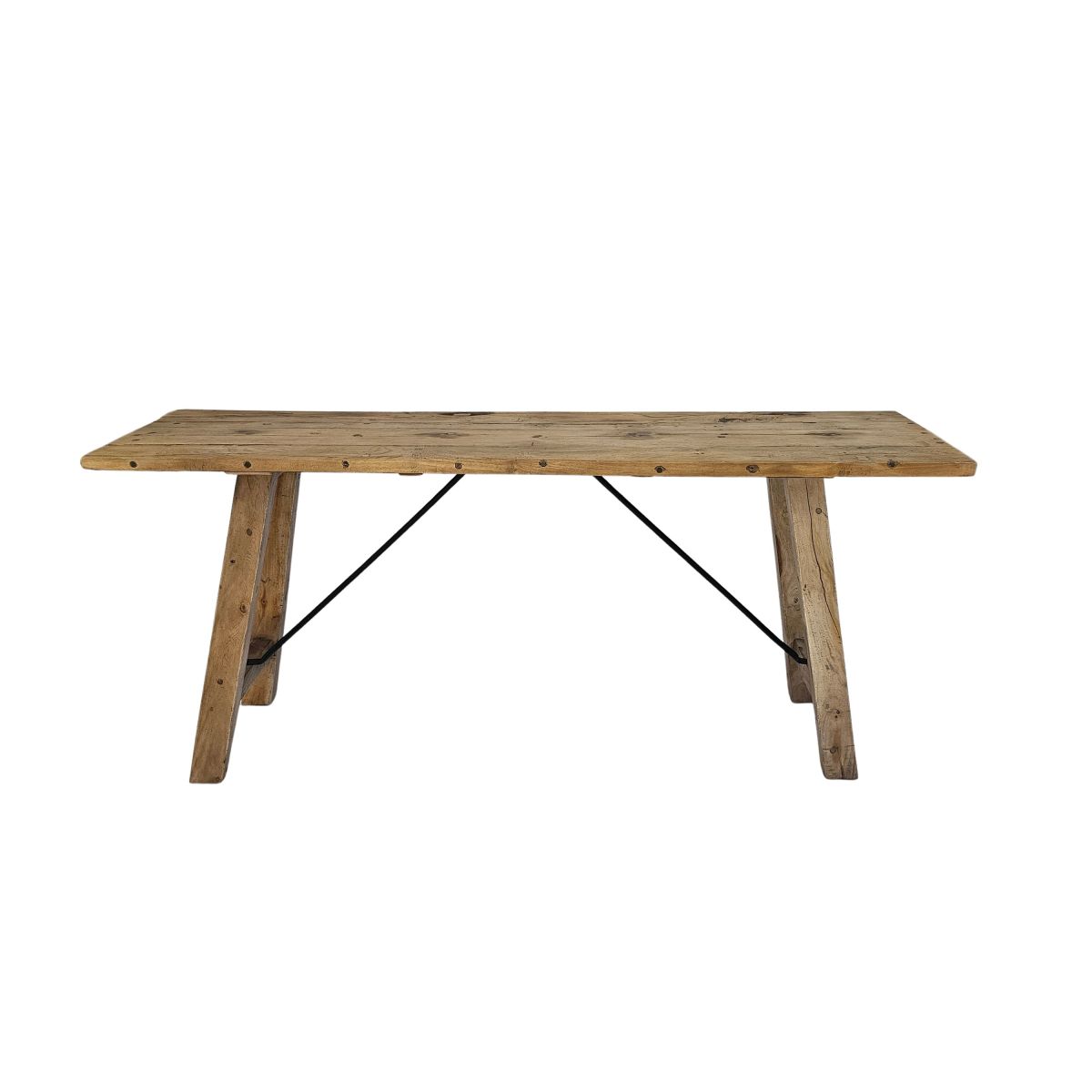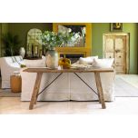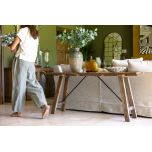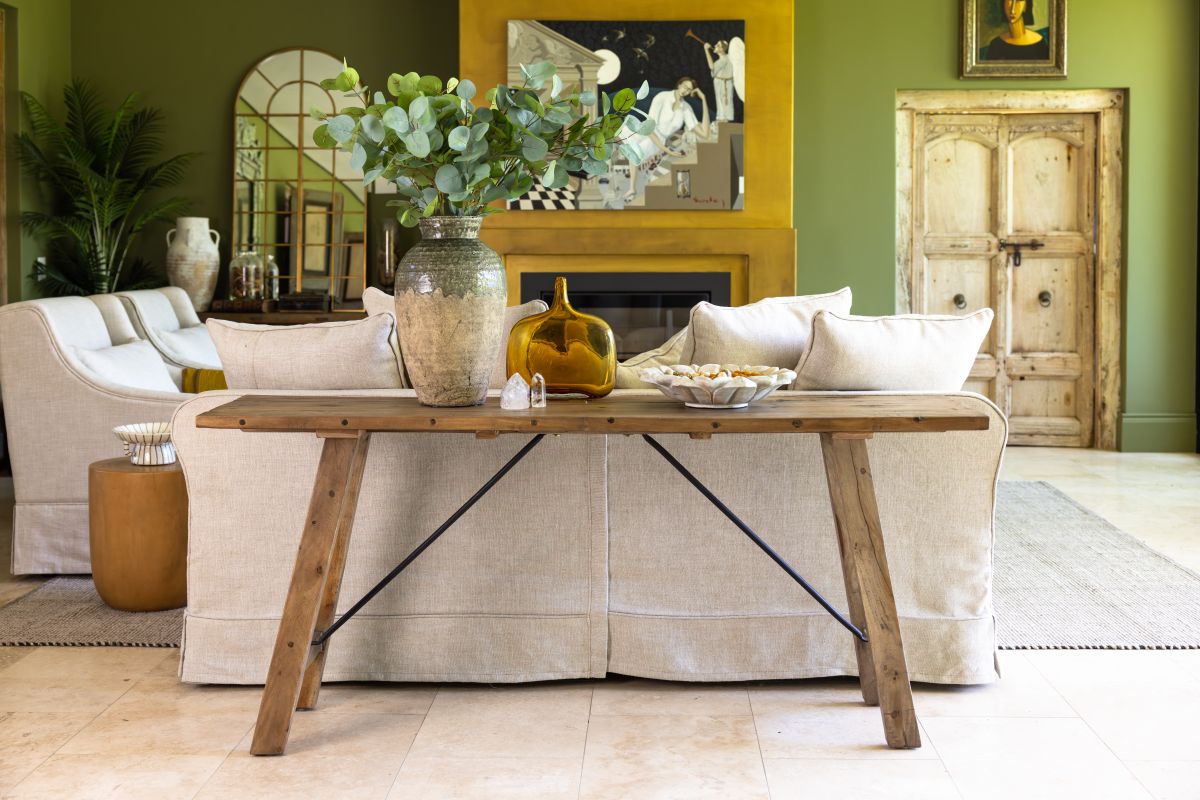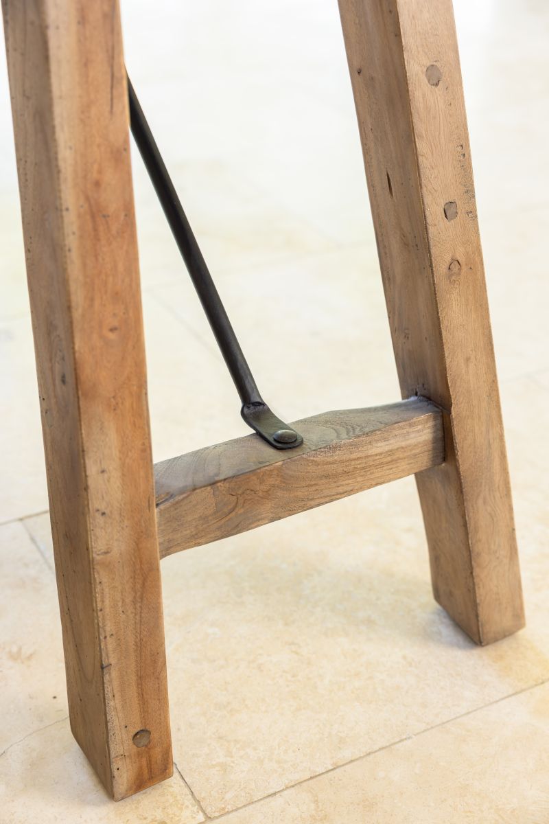 The Agate console table from the Villa collection showcases a robust finish on reclaimed boatwood, bringing character and history into any space. Architectural detailed legs make this piece a standout feature. Position this console table in an entryway or living room to create a captivating focal point. Complement its unique texture with an oversized mirror or bold artwork above, and add a few curated decor pieces for a personalised touch.