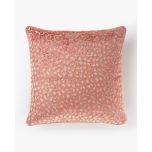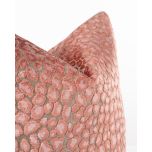 The cushion features a fully upholstered pebble-textured velvet design, with both the front and back showcasing the same beautifully woven rose-quartz and coral-toned pattern. The raised velvet detailing creates rich depth and dimension, adding a sophisticated tactile element that enhances any sofa, bed or accent chair.