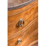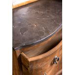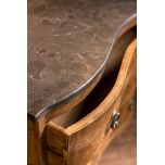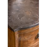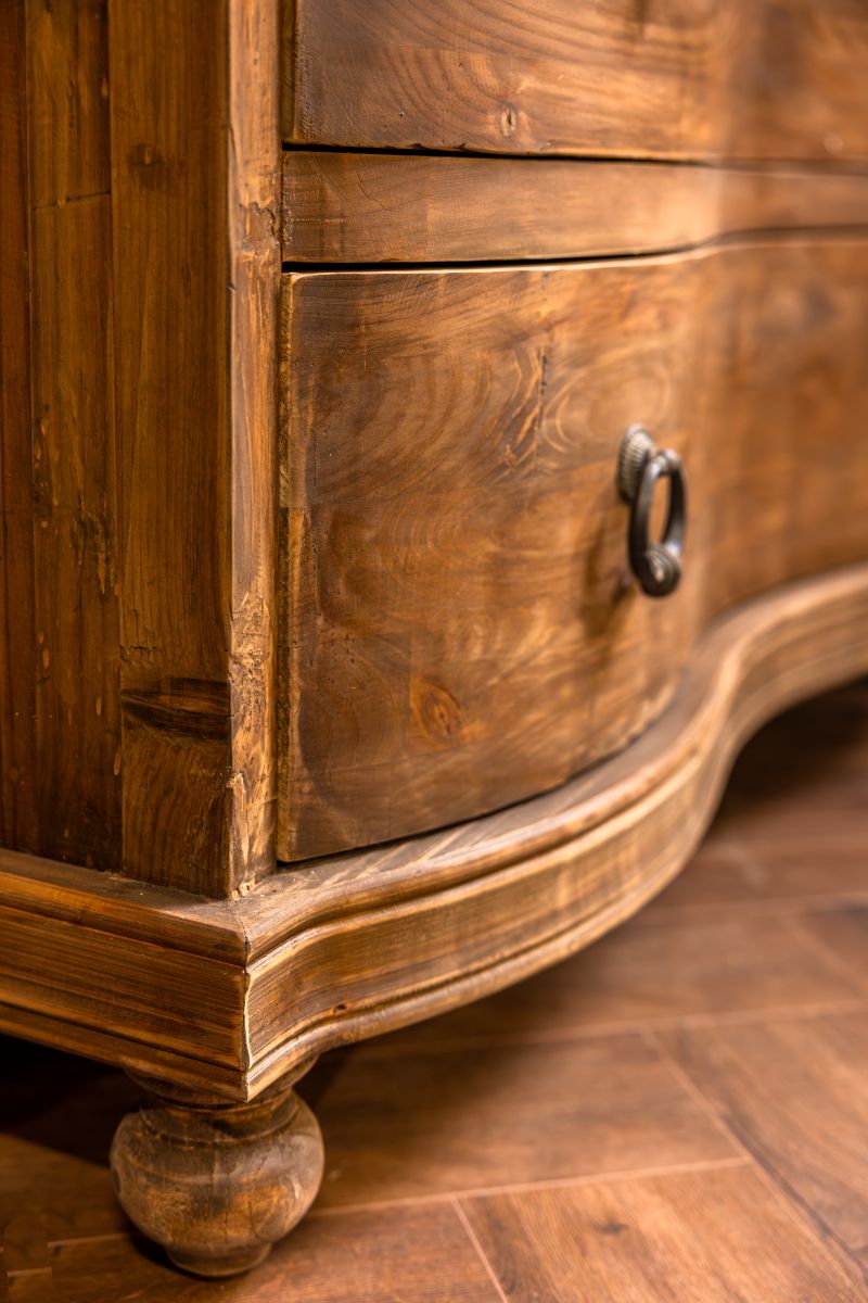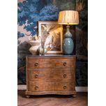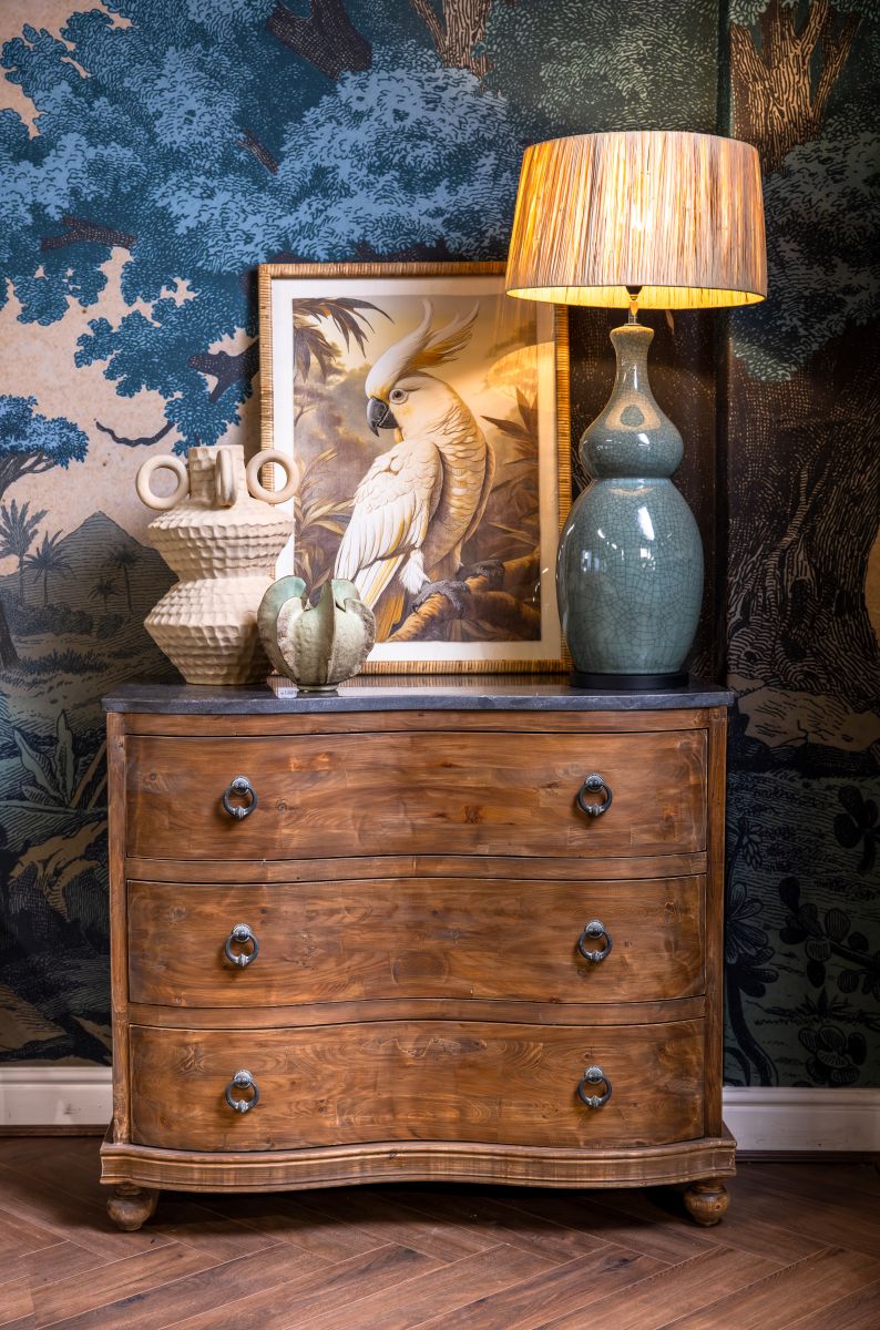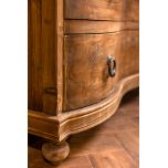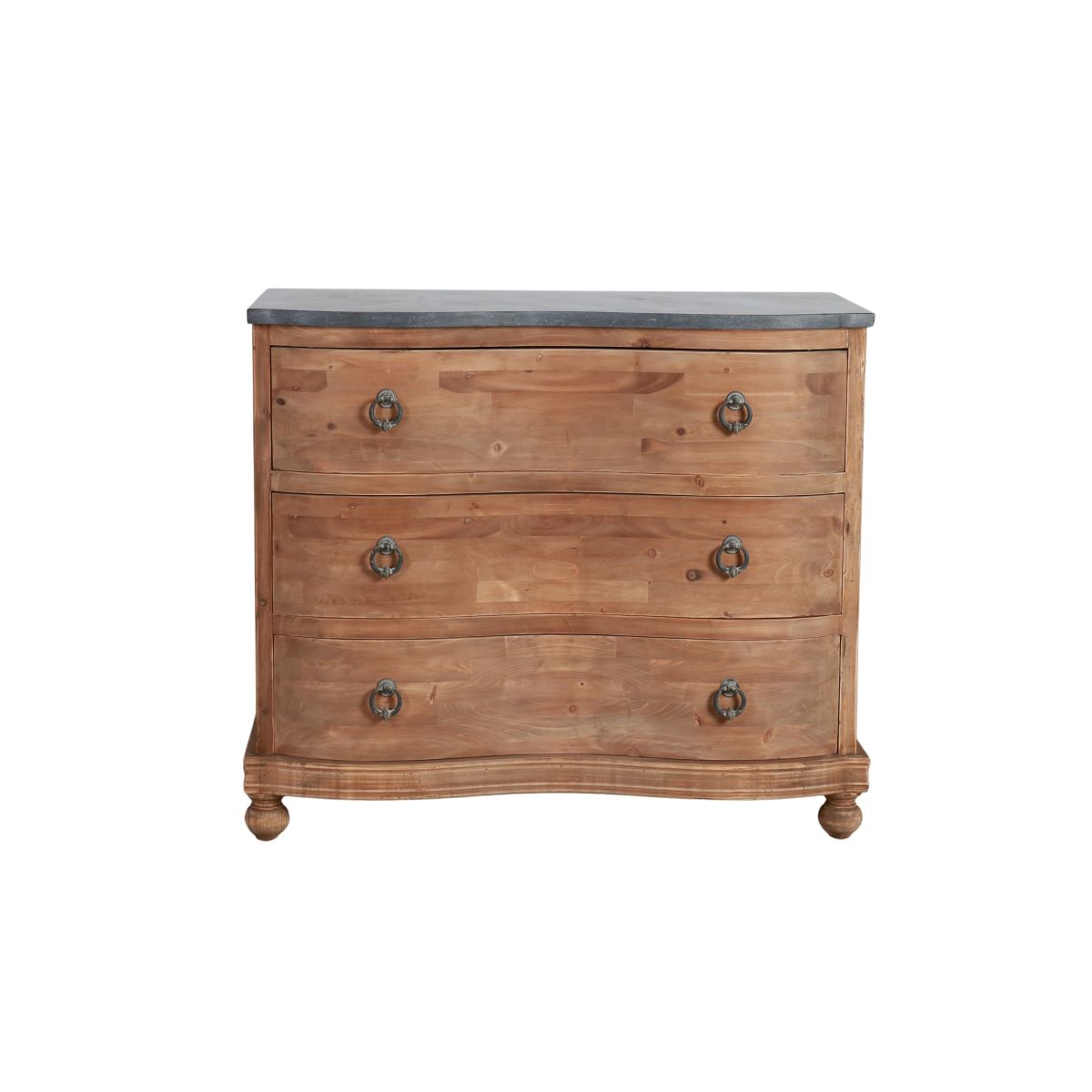 The Antoine chest of drawers from our Chateau collection embodies timeless French elegance with a modern twist. Crafted from old pine, its raw, pale wood offers a warm, inviting contrast to the sleek, scalloped blue stone top. Classic bun feet add sophistication, making it a versatile piece perfect for any setting. Whether gracing your bedroom beside a grand bed, serving as a focal point in your lounge, or welcoming guests in your entrance hall, the Antoine chest is both functional and stylish. Its generous size also makes it ideal as a sideboard, beautifully complemented by a mirror or painting above it.