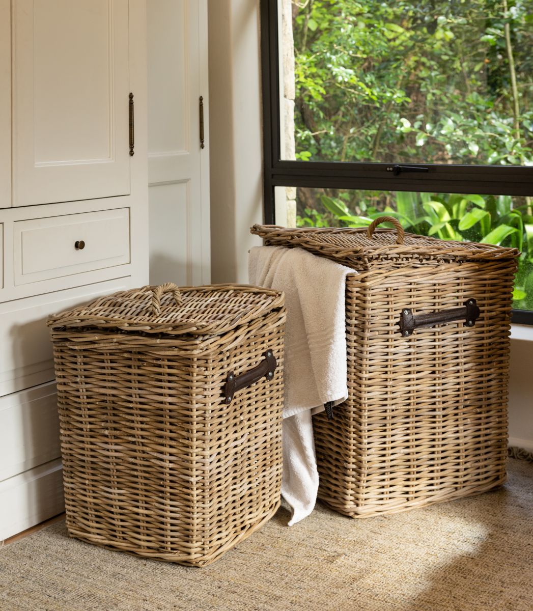 Our Lilah laundry basket features a traditional kubu weave, providing both functionality and a rustic charm. Equipped with convenient handles and a secure lid, it's perfect for keeping your laundry organized and out of sight.