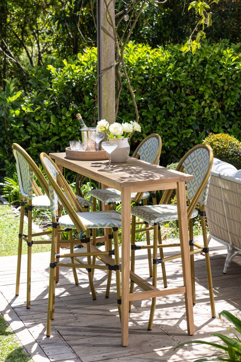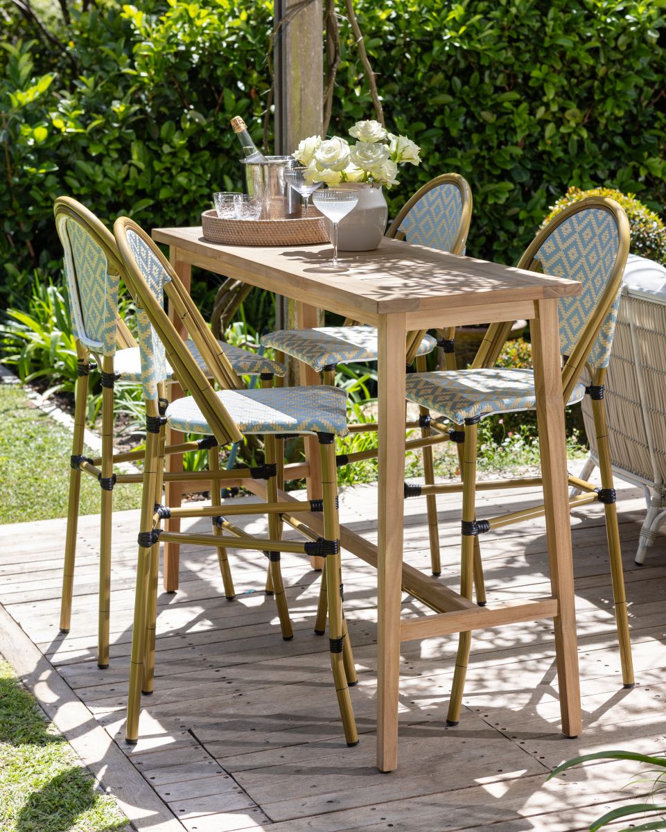 Constructed from a sturdy aluminum frame with a bamboo effect, these barstools are more durable than bamboo alternatives and can be used indoors as well as outdoors.