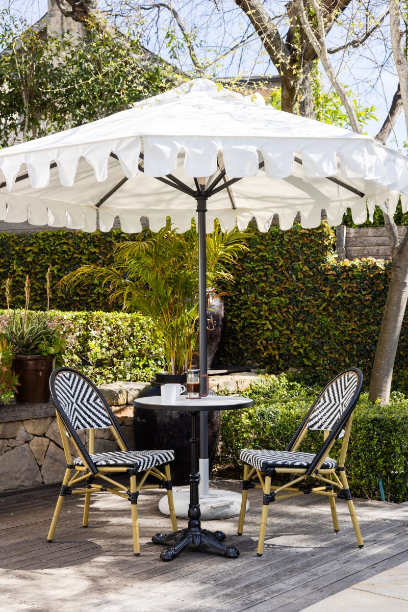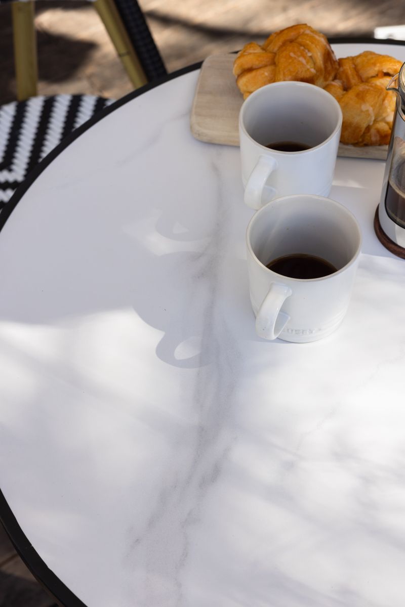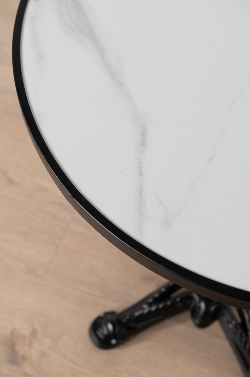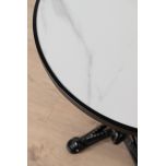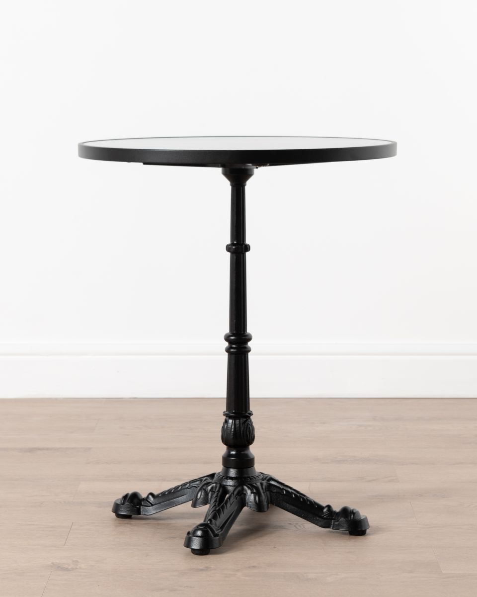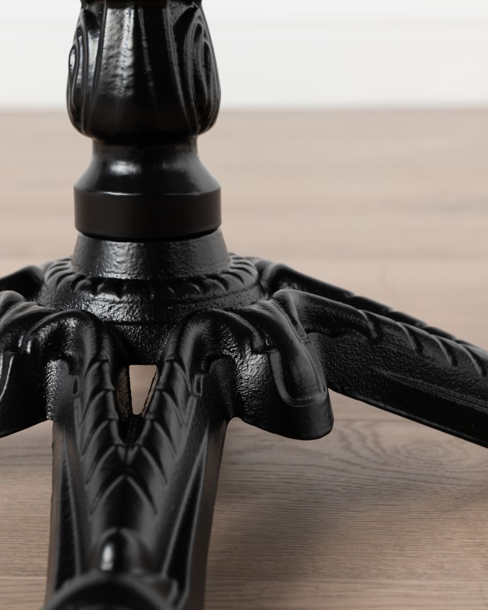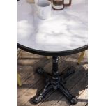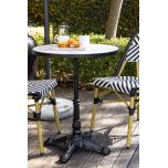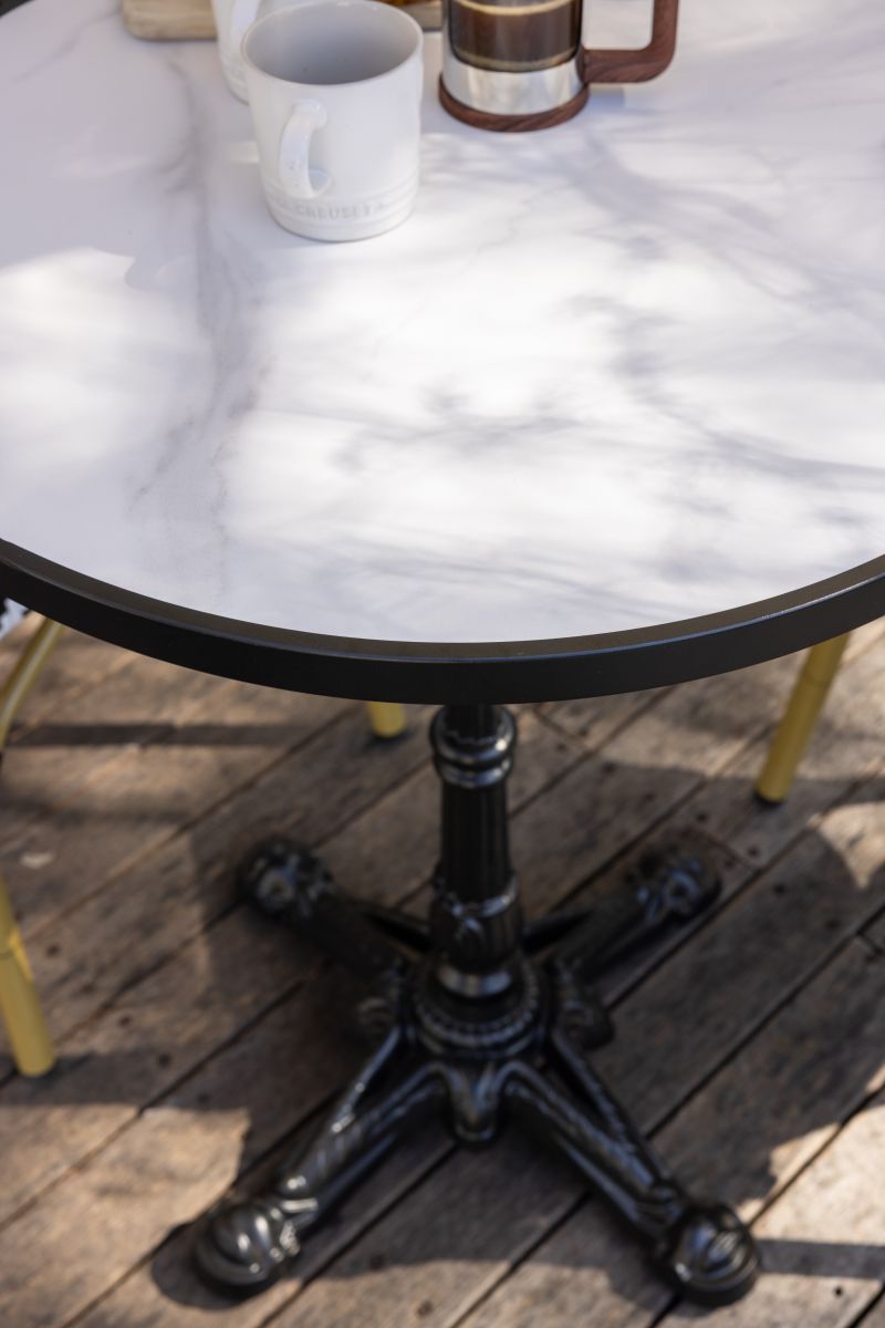 A fusion of timeless design and modern durability, the Metal Cafe Table from our Brioche Range is an ideal addition to your outdoor space. Featuring a robust cast iron pedestal base finished in sophisticated black, it offers unparalleled stability with a touch of traditional elegance. The intricate detailing on the base, from the sculpted column to the graceful feet, evokes the charm of French cafés. Topping this sturdy foundation is a sleek, round sintered stone tabletop, offering durability and hassle-free maintenance.