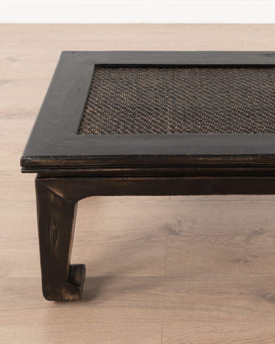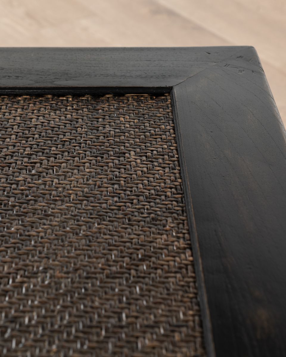 - Rectangular coffee table with rattan inlay top