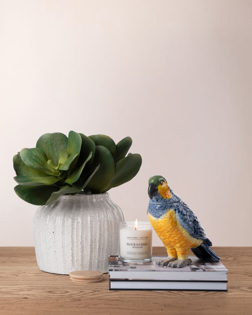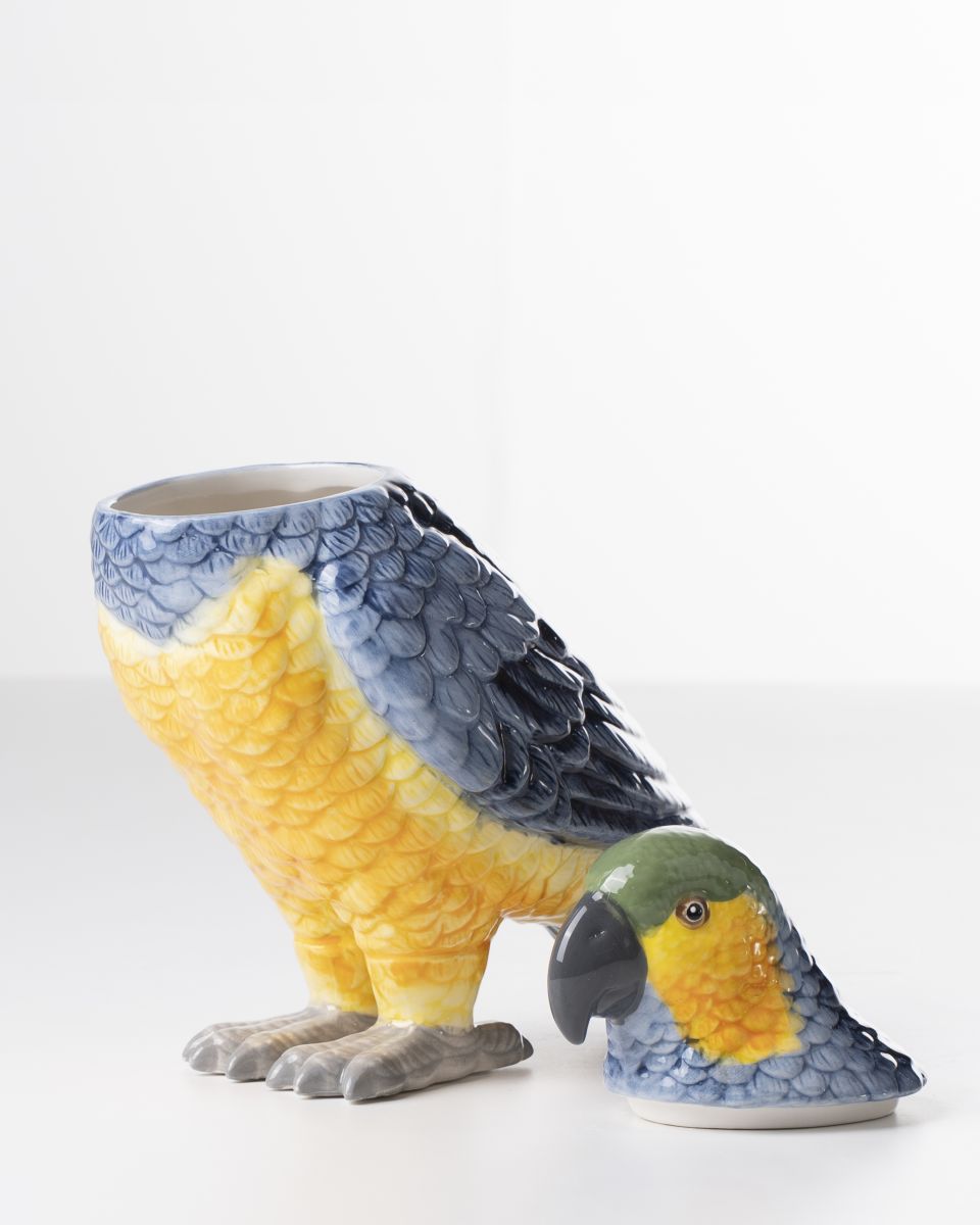 Brighten up any space with this charming ceramic parrot! Featuring a removable head that doubles as a lid, this unique piece is both playful and practical—perfect for storing small treasures or simply as a striking decor statement.