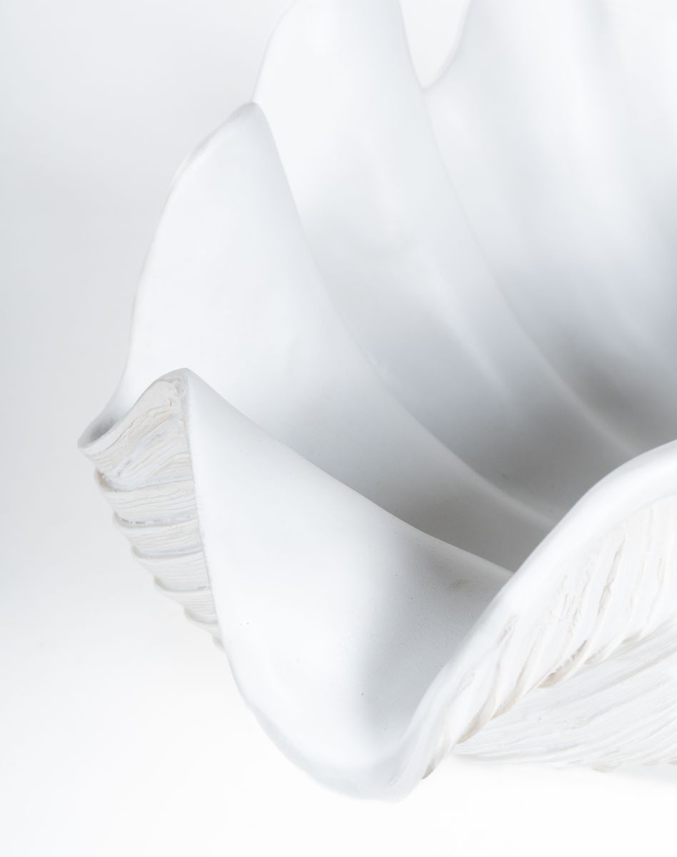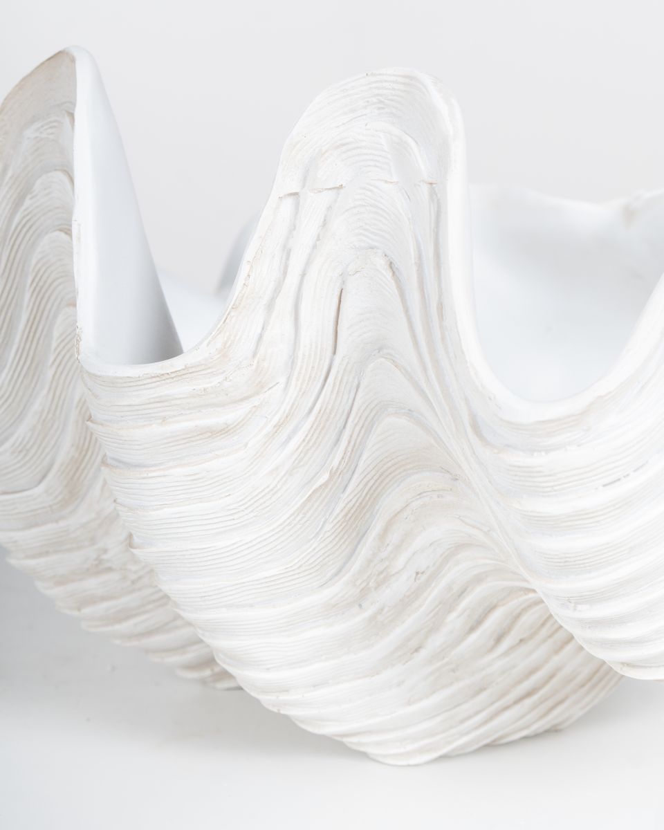 The White Resin Clam Shell is a striking statement piece that evokes the beauty of the ocean in a refined, sculptural form. Crafted from durable resin with a smooth matte finish, it captures the intricate textures and flowing contours of a natural clam shell. This versatile piece can be styled as a decorative bowl, centerpiece, or standalone display item, bringing a sense of coastal serenity and organic elegance to any interior.