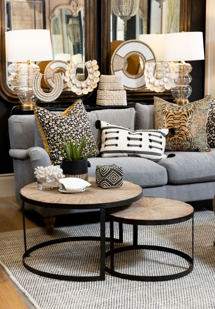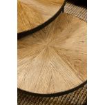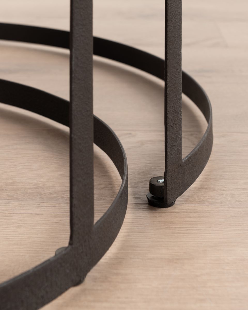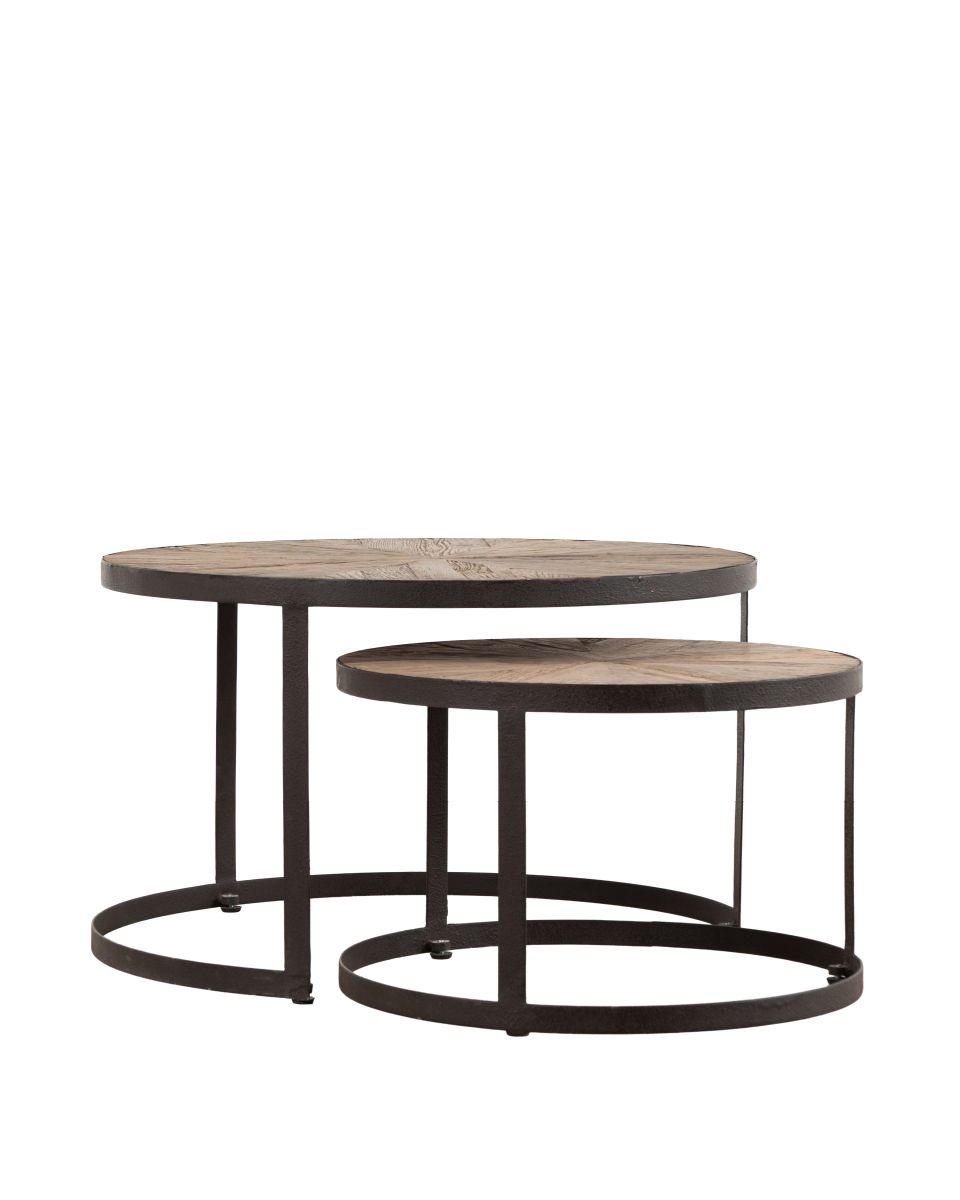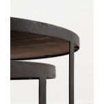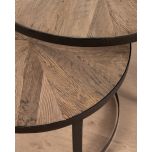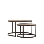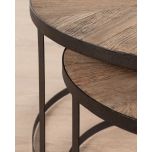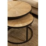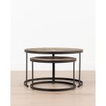 Transform your living space with our Thula nesting coffee tables from the Ebony Collection, featuring a chic black metal frame and the natural beauty of reclaimed oak surfaces.