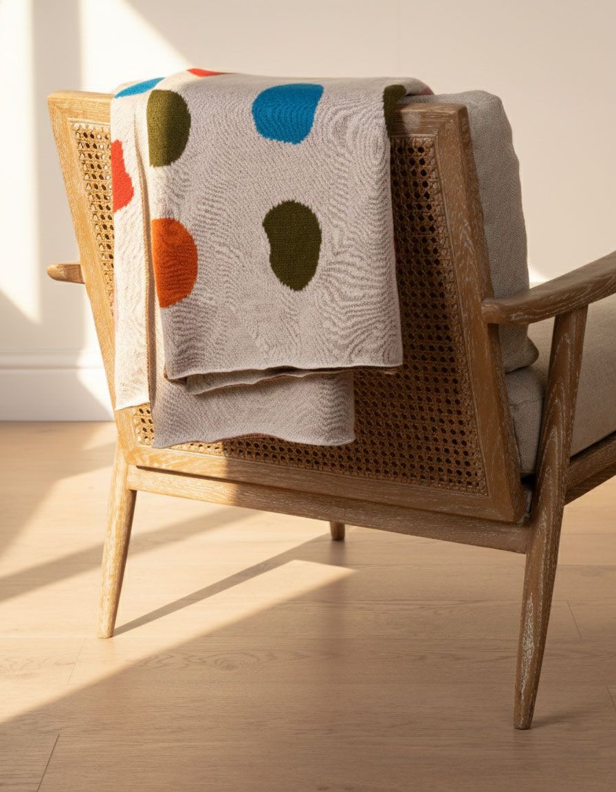Bring instant joy and playful energy into your home with the Colour Splash Throw. Crafted from soft, breathable 100% cotton, this vibrant knitted throw features an array of bold, painterly dots scattered across a warm neutral background. With pops of red, blue, yellow, orange, green, and blush, it creates a lively, artistic look that brightens any space.