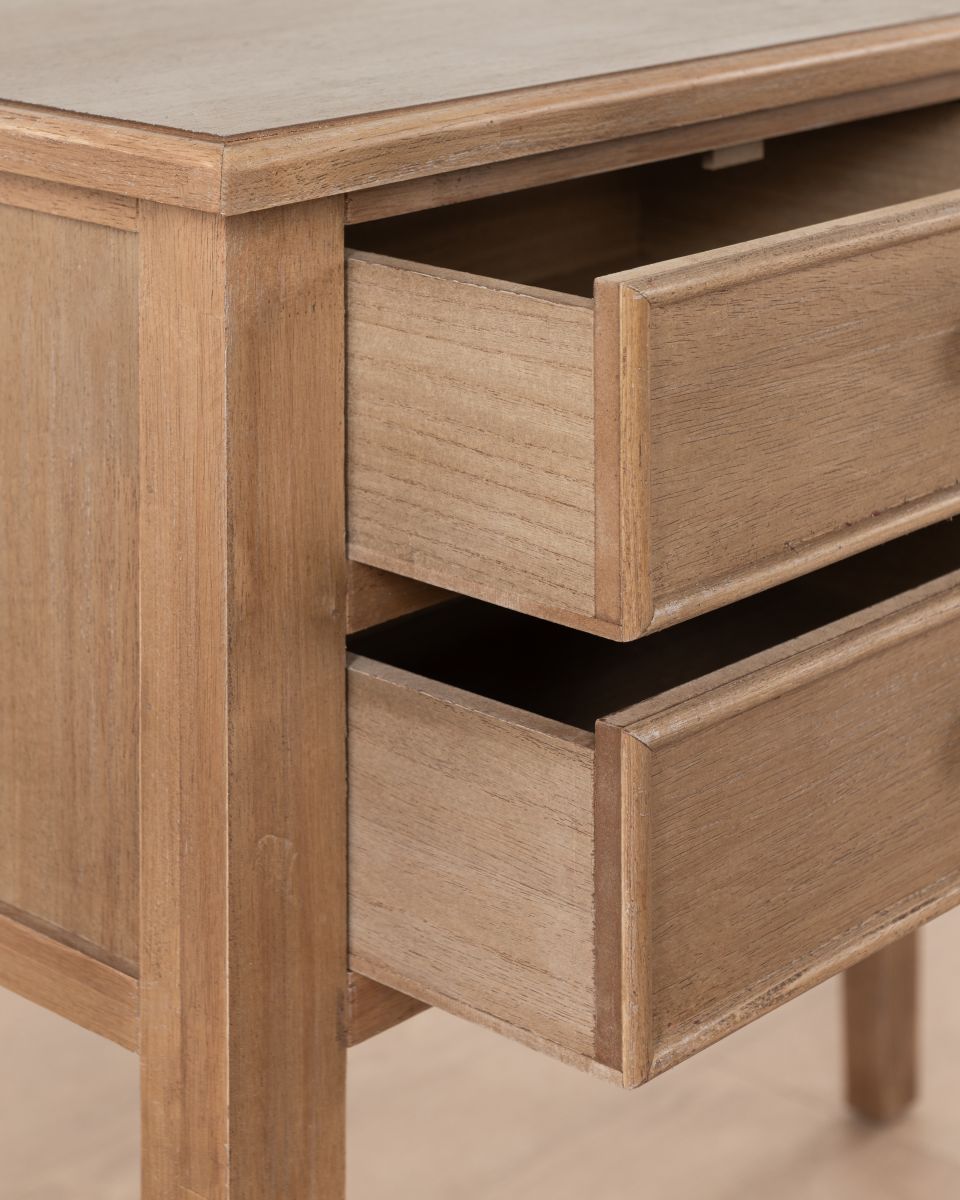 Whether nestled up beside your living room sofa or acting as your nightstand in the master suite, the Cadby bedside table is the perfect option for staging and stowing. Resting atop 4 straight feet, its clean-lined frame is handcrafted from fir wood and features a neutral solid finish for a look that works with both classical and contemporary aesthetics.