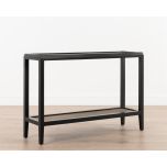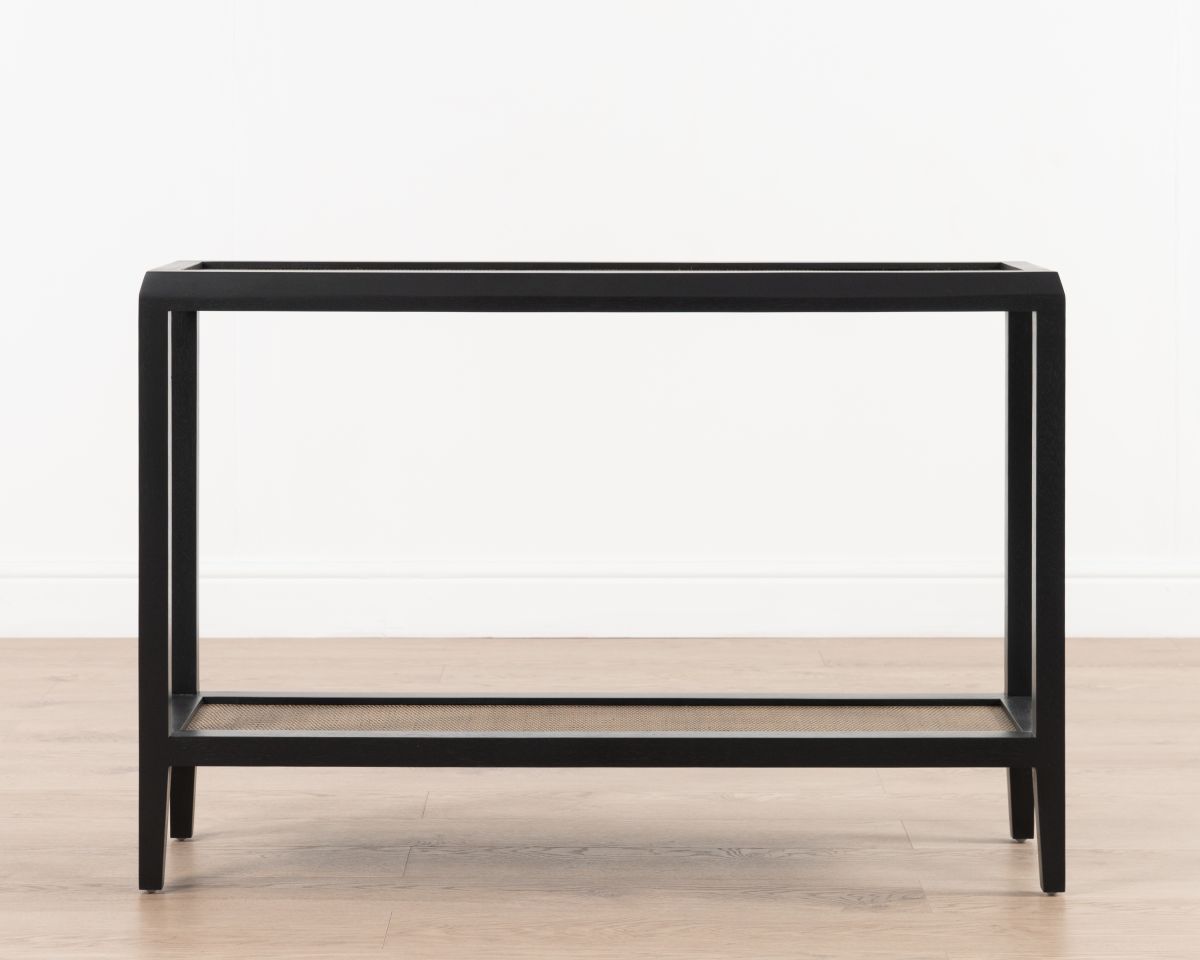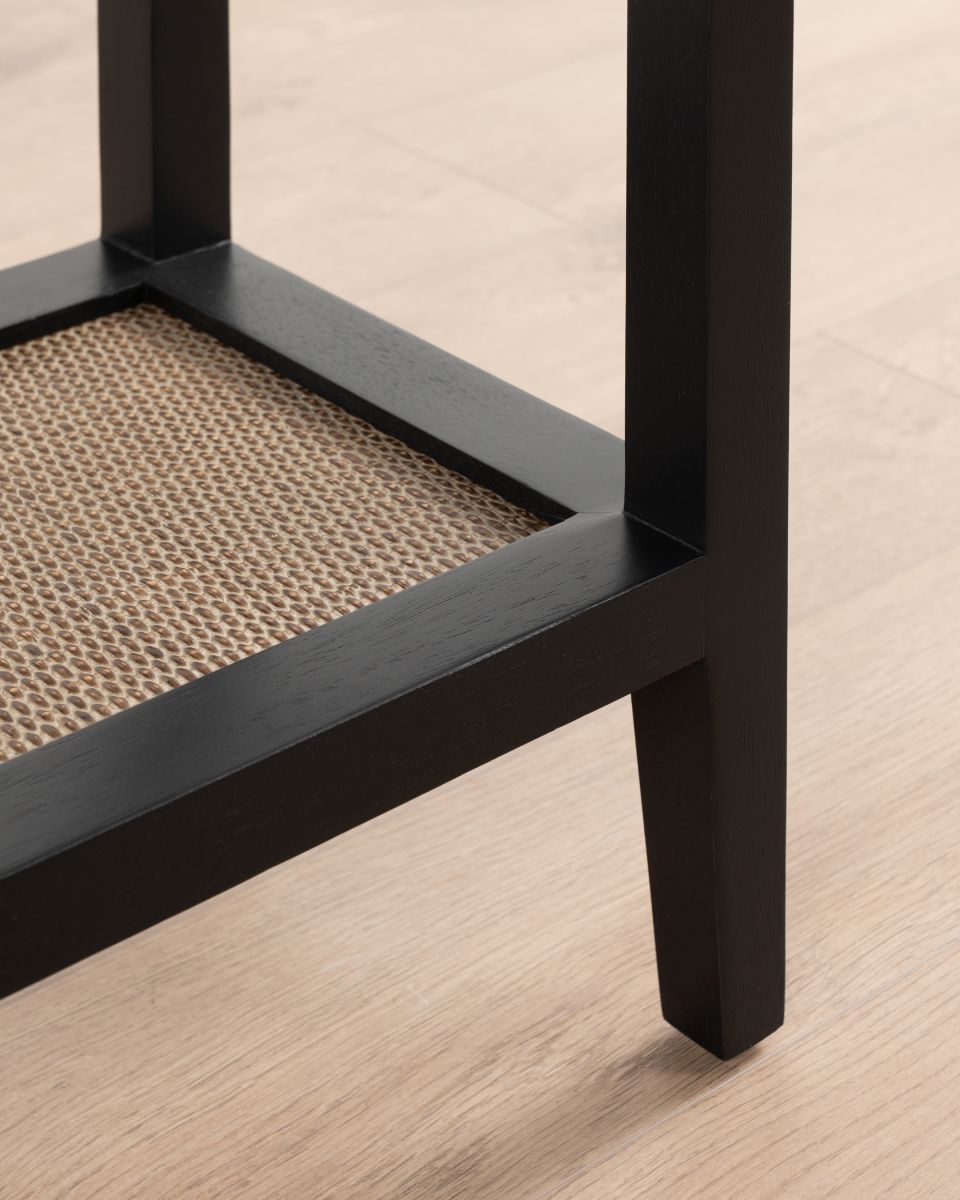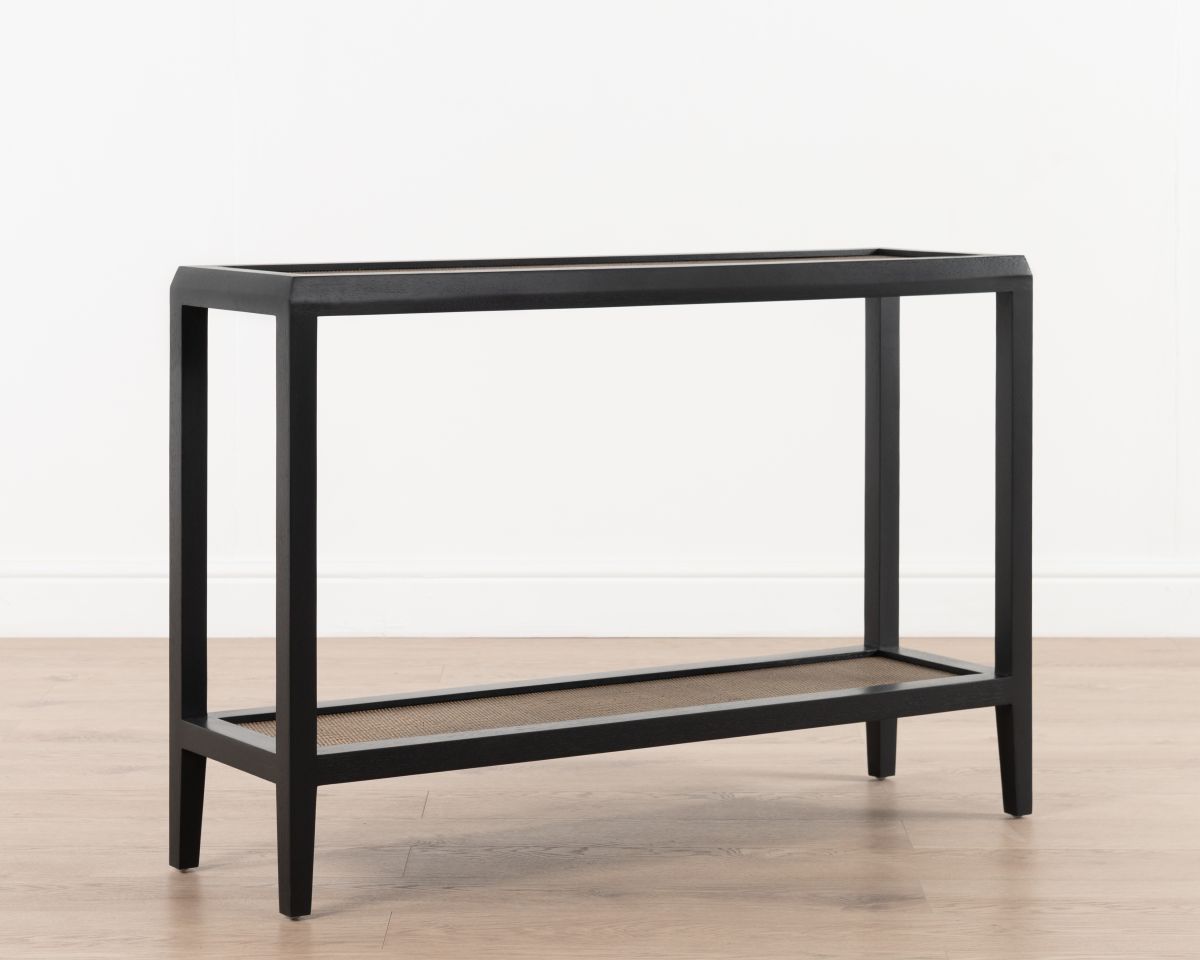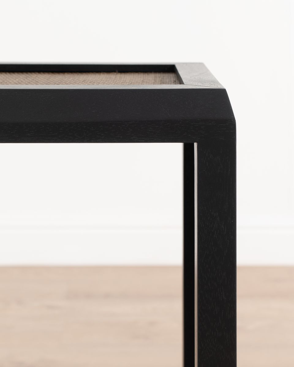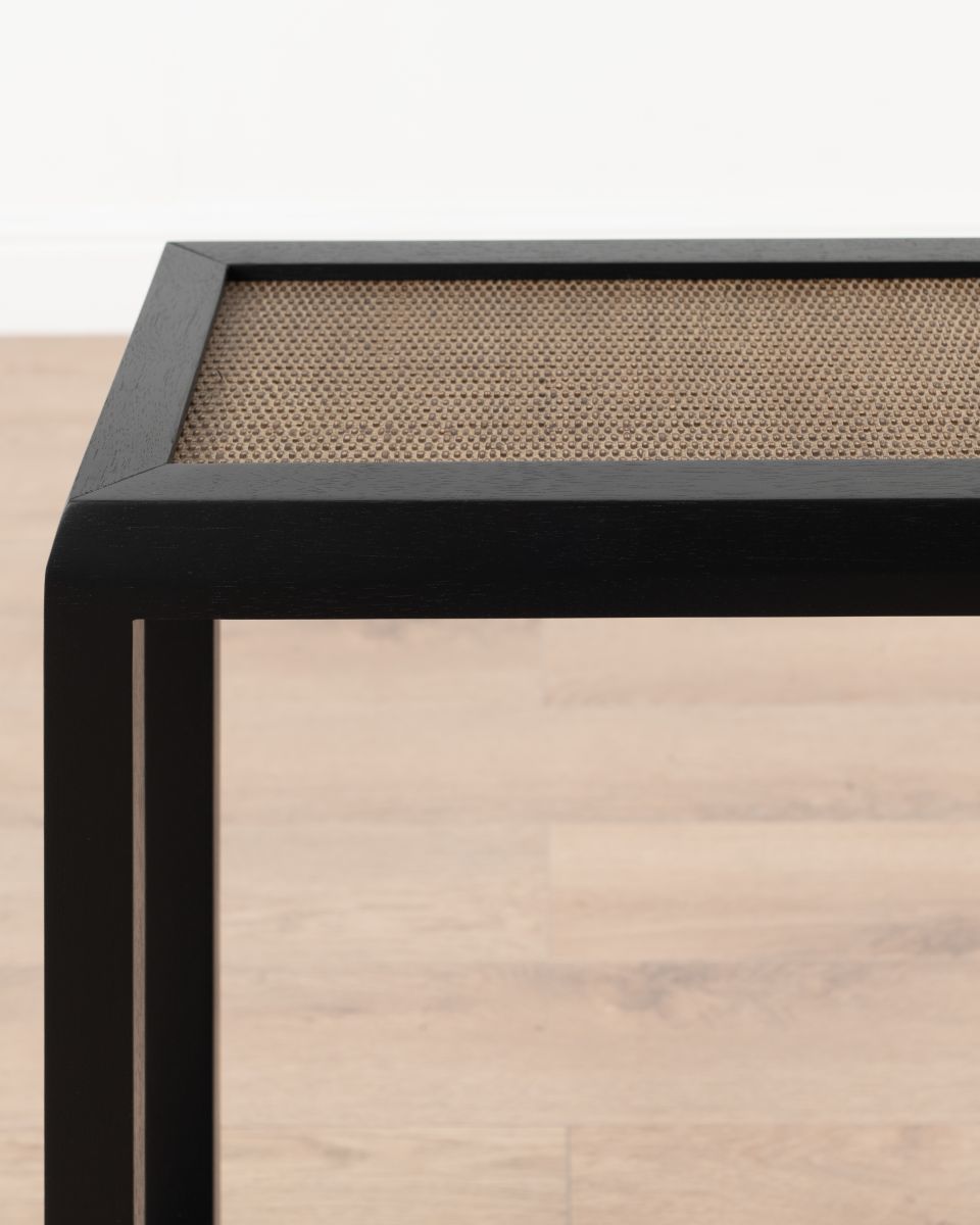 The Palm console from the Villa collection features a striking contrast with black wood complemented by warm brown cane inserts. Its sleek shape and thoughtful details make it a stylish centrepiece. Pair it with neutral-toned furniture and indoor plants to highlight its natural elegance.