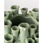 The Cordelia Ceramic Vase is a captivating piece that adds an organic touch to any space. This ceramic vase features a unique design in a beautiful green glaze. Fill it with a small bouquet or simply let its unique design be the star.