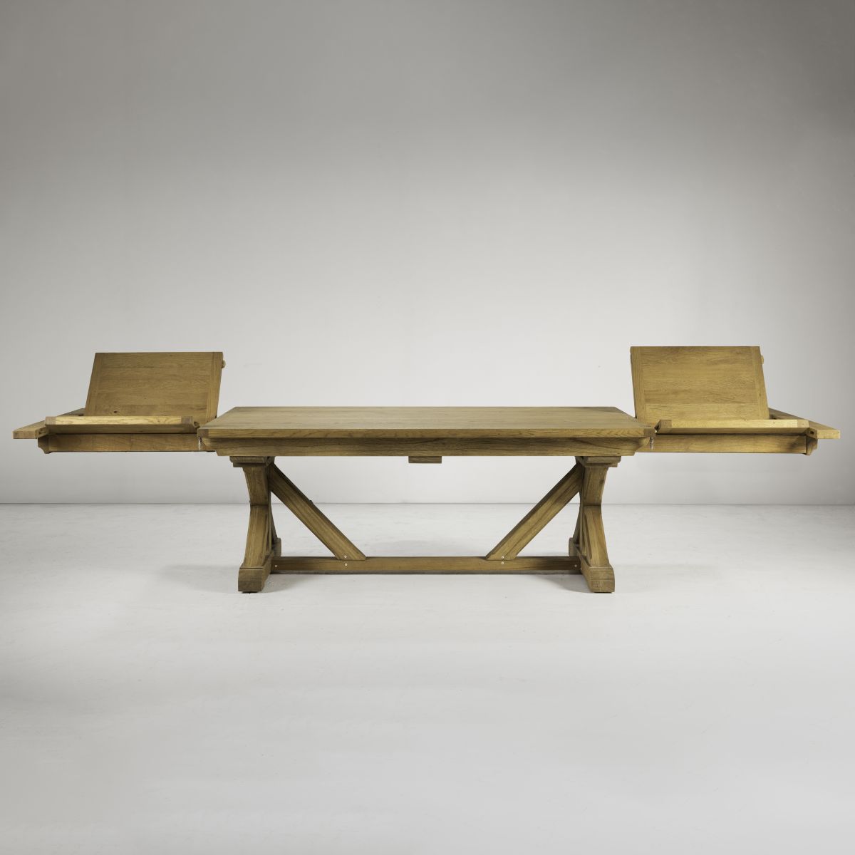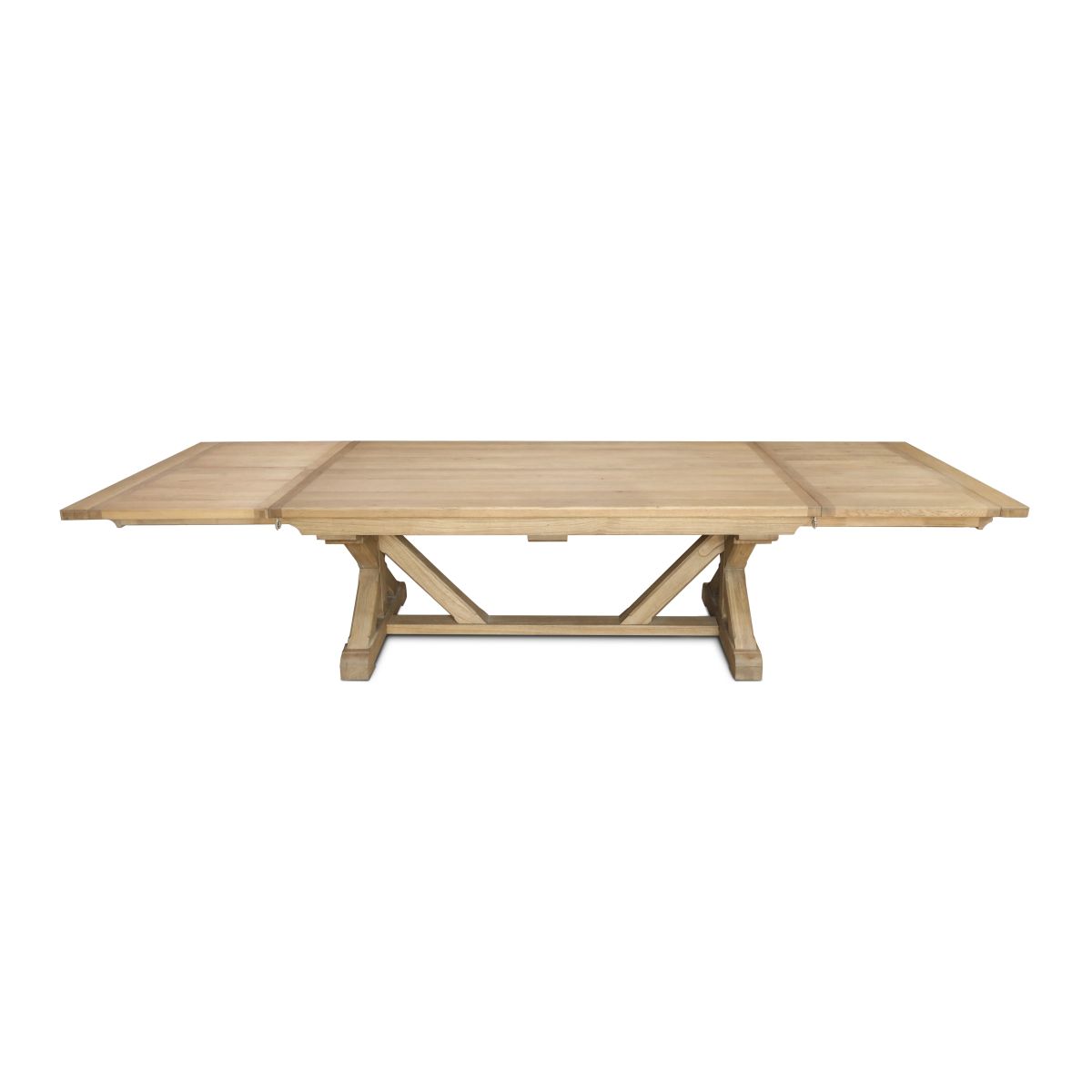 The Oxford extension dining table, part of our Premium extension table collection, draws inspiration from the Country farmhouse style, boasting a versatile design that can complement either rustic or more sophisticated settings. Constructed from sturdy mindi and oak wood, the table features a classic cross-leg detail and a smooth oak finish. With its double-end pull-out twin butterfly extending mechanism, this table offers flexibility and space for any dining occasion, making it ideal for both intimate meals and grand gatherings.