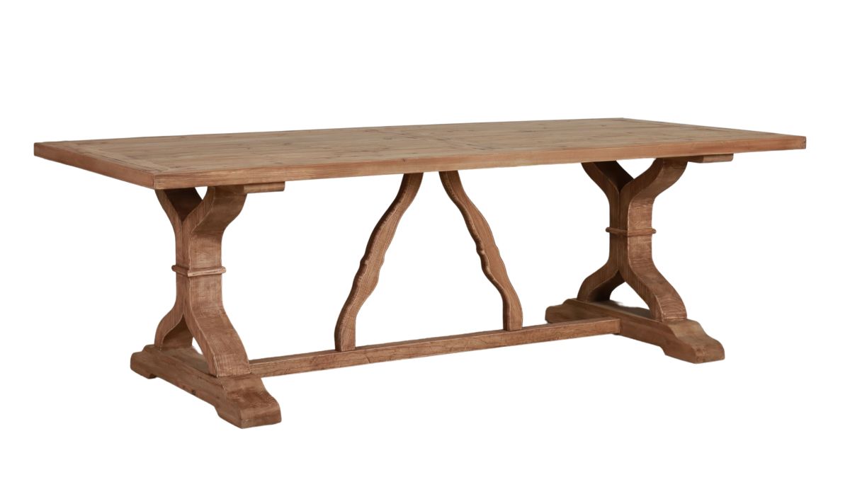 Discover the rustic elegance of the Colmar Dining Table from our Chateau Collection, a grand centrepiece crafted in the French Provincial style. Made with the warmth of old pine, this large table invites grand gatherings and intimate meals alike. Its finely detailed base adds a touch of old-world charm to your dining space. Whether hosting a festive dinner or enjoying a quiet family dinner, the Colmar Dining Table sets the stage for unforgettable moments.