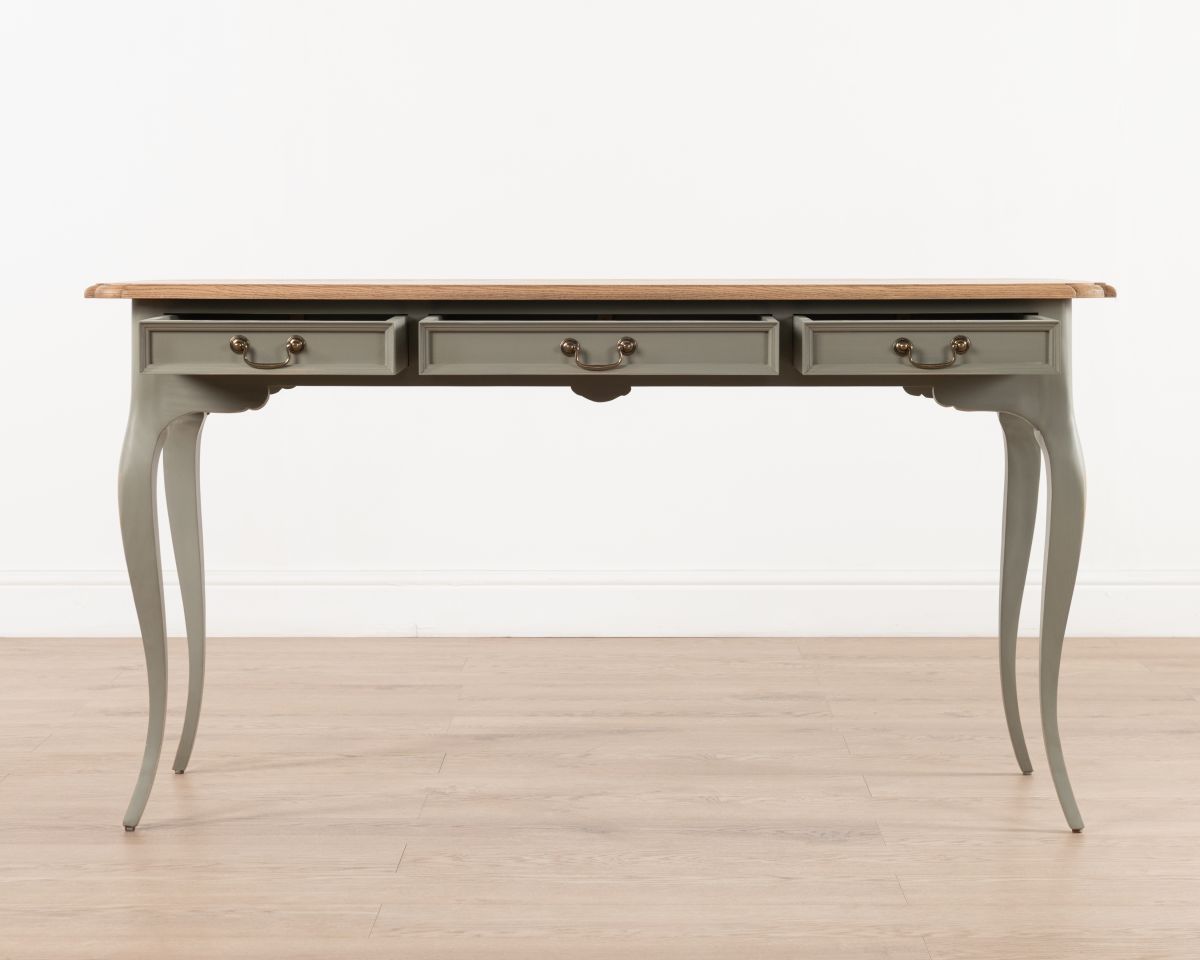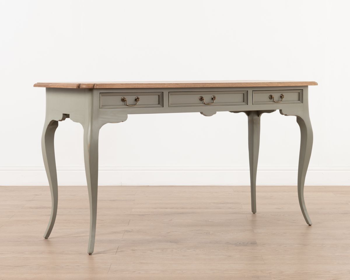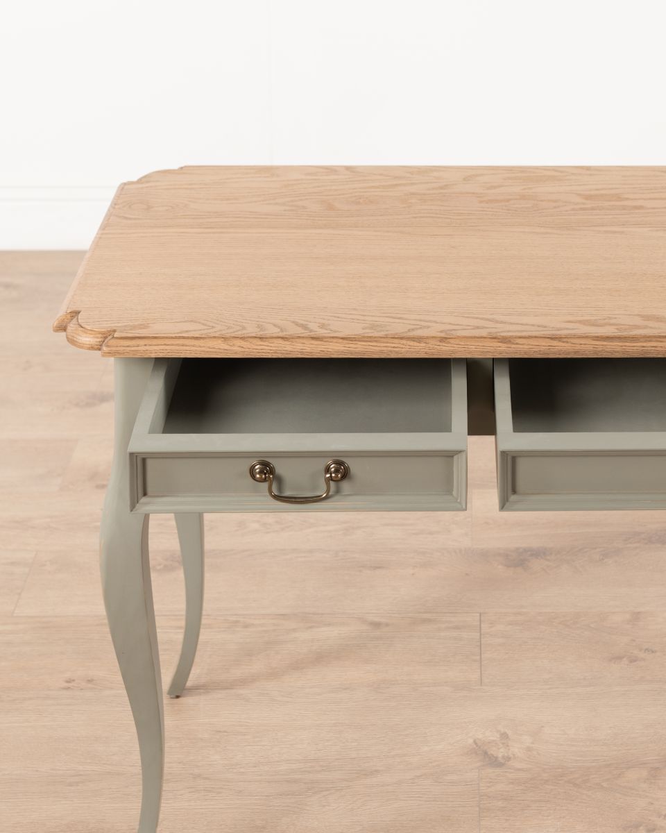 Add a touch of French chic to your home with the Normandy Writing Table. Its simple, classic lines are paired with practical drawers, decorative pulls, and elegant cabriole legs, creating a timeless piece that blends beauty with everyday functionality. Perfect for a bedroom, study, or living space, the Normandy brings understated sophistication wherever it’s placed. Shown here in Antique Weathered Oak with and painted Biscuit base, it embodies the charm and refinement of traditional French design while showcasing true Block & Chisel craftsmanship.