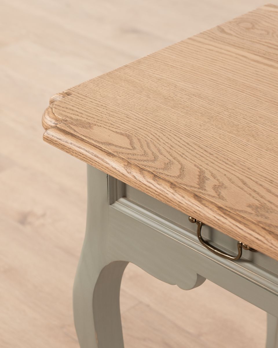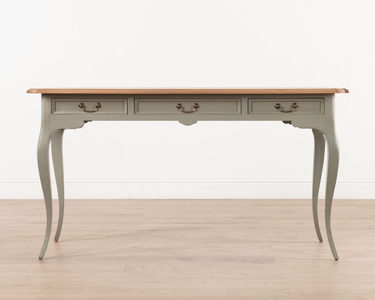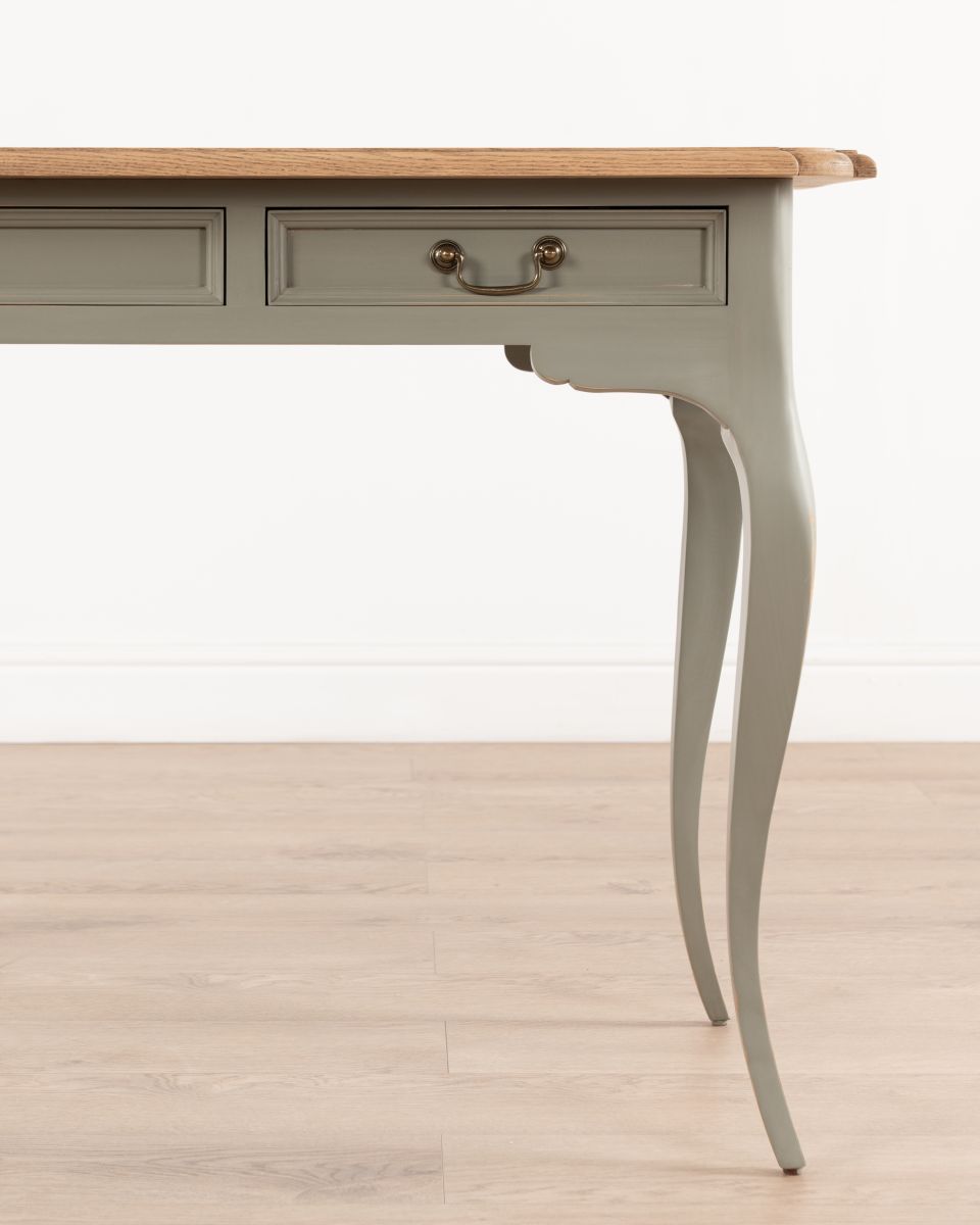Add a touch of French chic to your home with the Normandy Writing Table. Its simple, classic lines are paired with practical drawers, decorative pulls, and elegant cabriole legs, creating a timeless piece that blends beauty with everyday functionality. Perfect for a bedroom, study, or living space, the Normandy brings understated sophistication wherever it’s placed. Shown here in Antique Weathered Oak with and painted Biscuit base, it embodies the charm and refinement of traditional French design while showcasing true Block & Chisel craftsmanship.