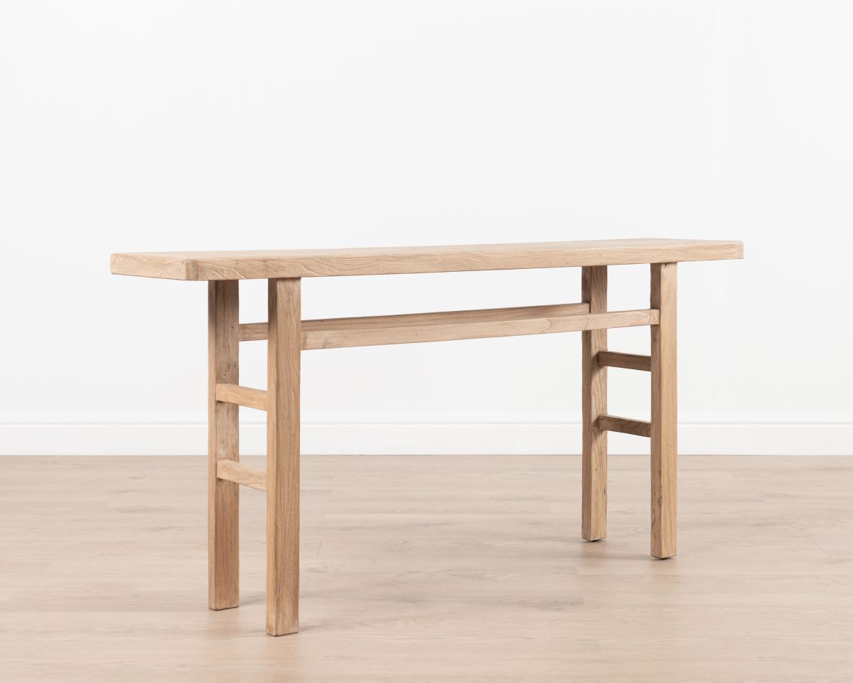 Crafted from elm with a natural finish, this range celebrates bold shapes and stripped-back design. Architectural and grounded, each piece is softened by subtle curves and rounded edges, offering a look that feels both ancient and modern.