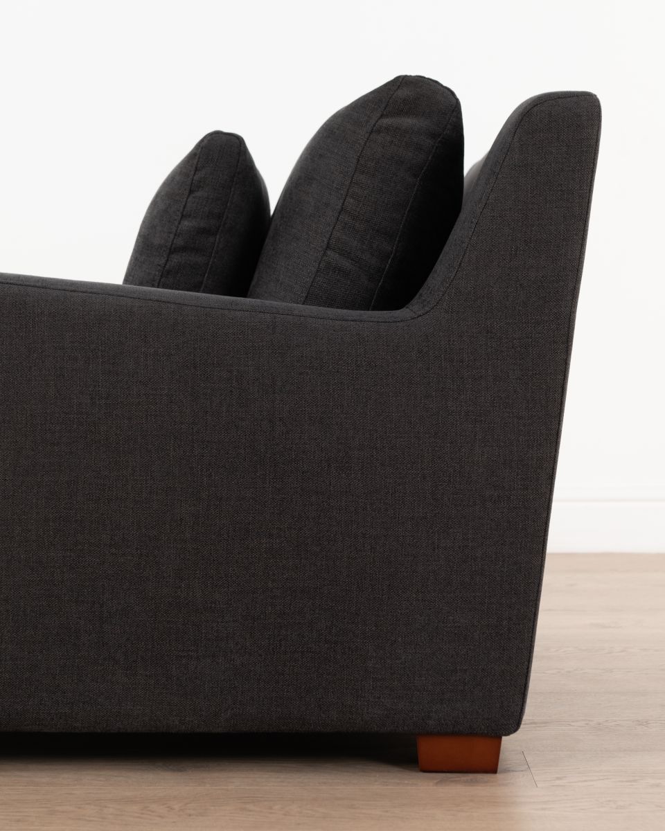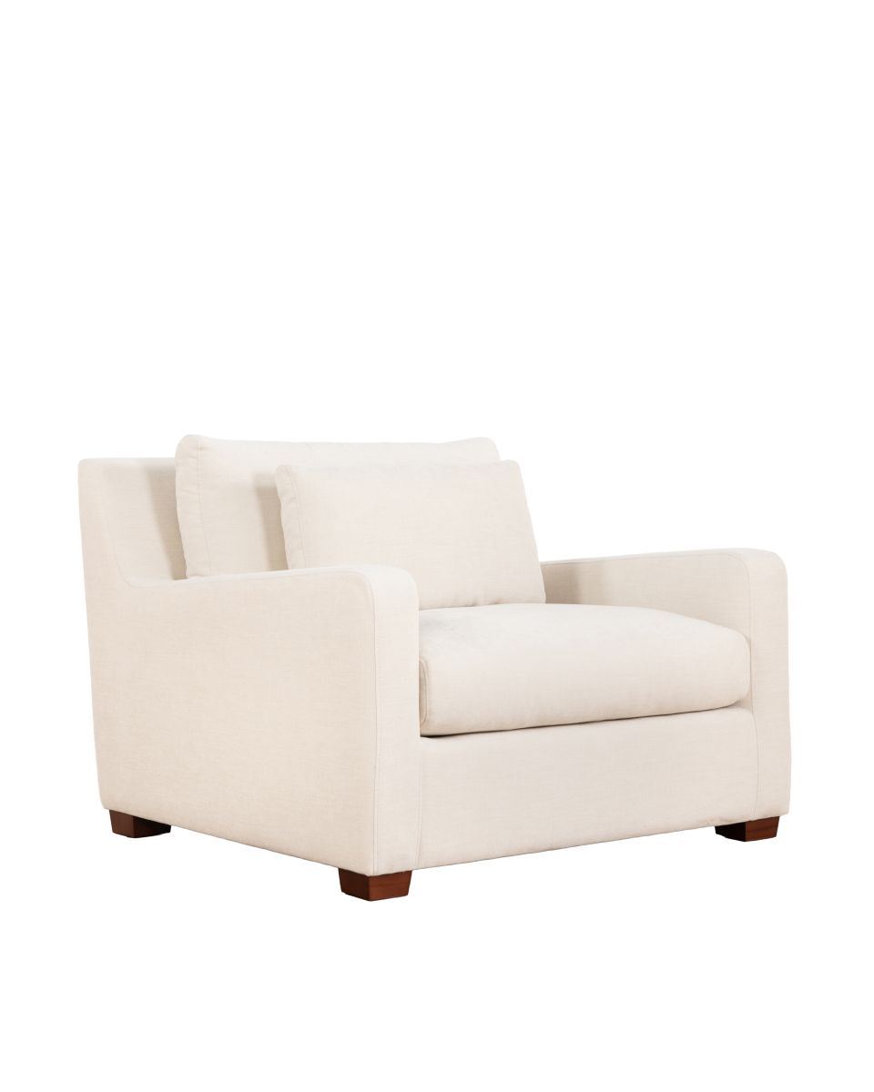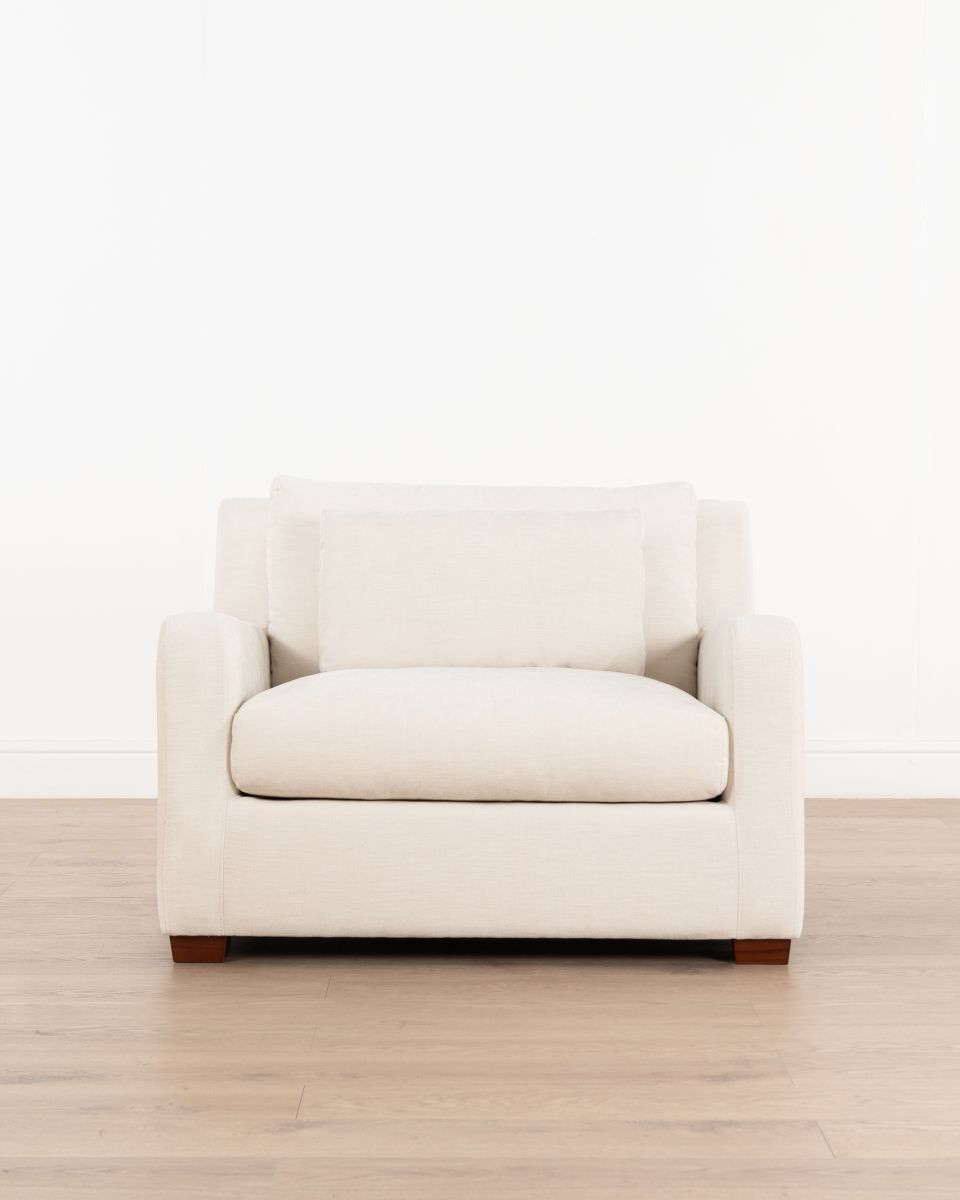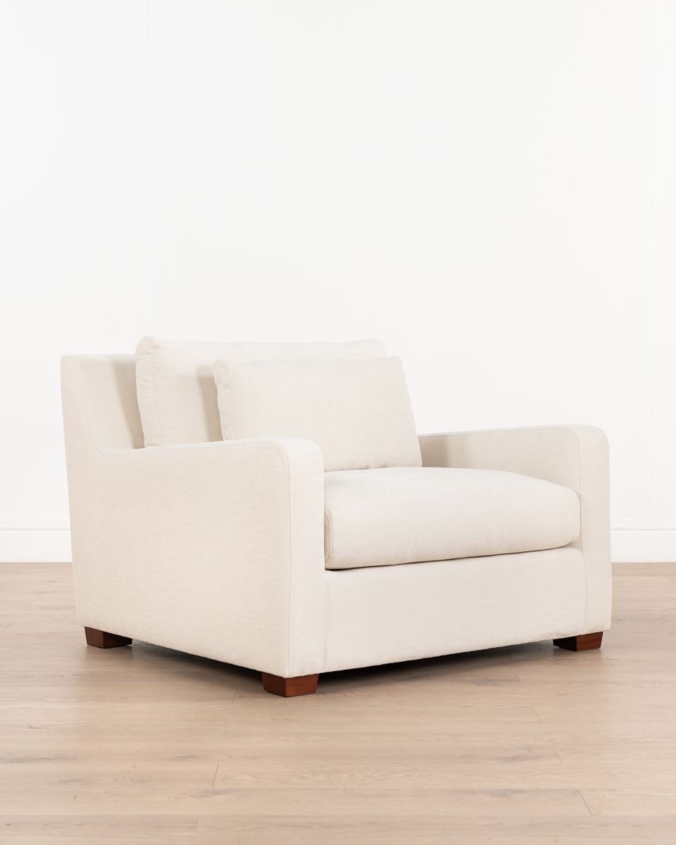 The European chair offers a broad seat, luxurious cushioning, and durable upholstery made from 100% polyester. The cushion is crafted from high-density foam and a layer of feather, ensuring plush softness without compromising on support and resilience. The loose lumbar cushion allows for ultimate flexibility and customizable comfort. Built with a solid timber frame, this chair is designed to last.