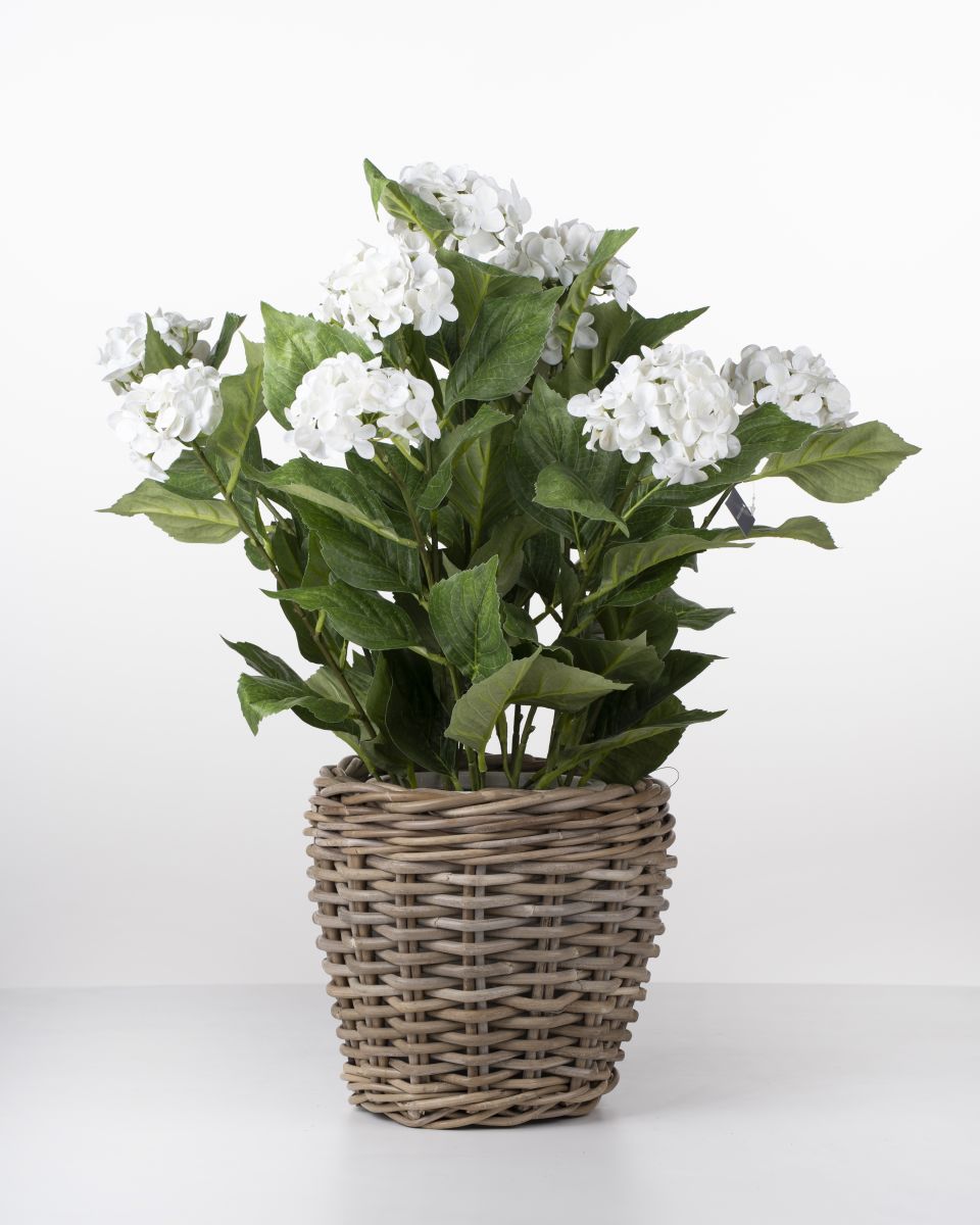 Full and vibrant, the Faux Hydrangea Plant showcases lush clusters of white flowers crafted from durable materials. Its classic charm and fresh greenery make it a beautiful accent for any décor style.