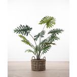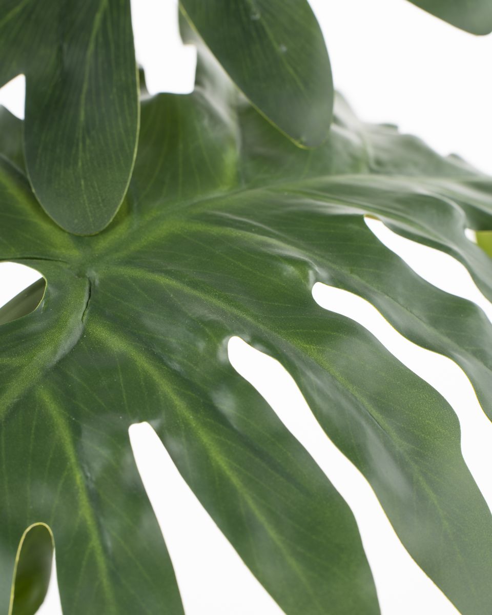 The Faux Philodendron Plant offers tropical elegance with its large, lobed leaves and tall, slender stems. Crafted from durable material, it adds height, texture, and lush greenery to a variety of interior styles with effortless realism.