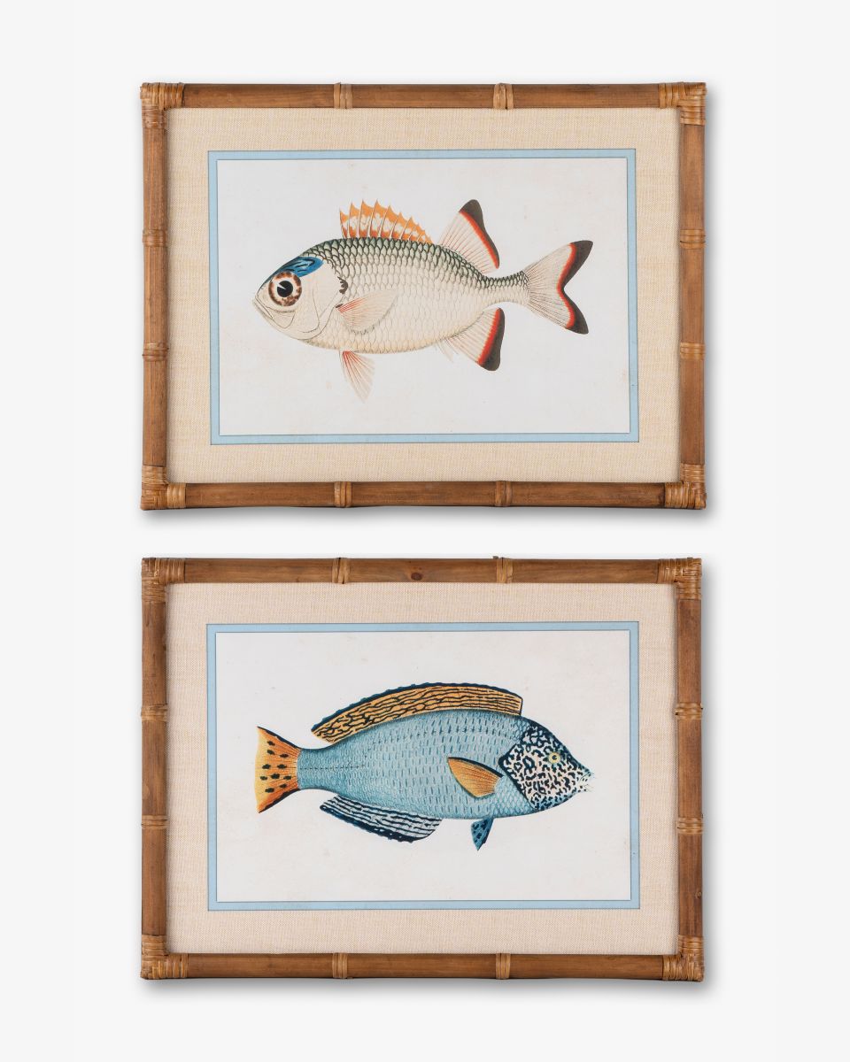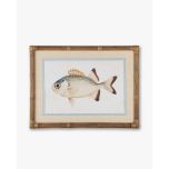 Bring the tranquil beauty of the ocean into your home with the Fish Framed Wall Art. Featuring a finely detailed illustration of a fish in soft tones with warm accents, it's a captivating addition to any space. The neutral background and vintage-style wood and rattan frame give the piece an archival quality. Perfect for creating a calm and natural atmosphere, the print works wonderfully as a standalone piece or as part of a curated gallery wall. Ideal for living areas, hallways, bedrooms or studies.