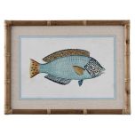 Bring the tranquil beauty of the ocean into your home with the Fish Framed Wall Art. Featuring a finely detailed illustration of a fish in shades of soft blue and yellow, it's a captivating addition to any space. The neutral background and vintage-style wood and rattan frame give the piece an archival quality. Perfect for creating a calm and natural atmosphere, the print works wonderfully as a standalone piece or as part of a curated gallery wall. Ideal for living areas, hallways, bedrooms or studies.