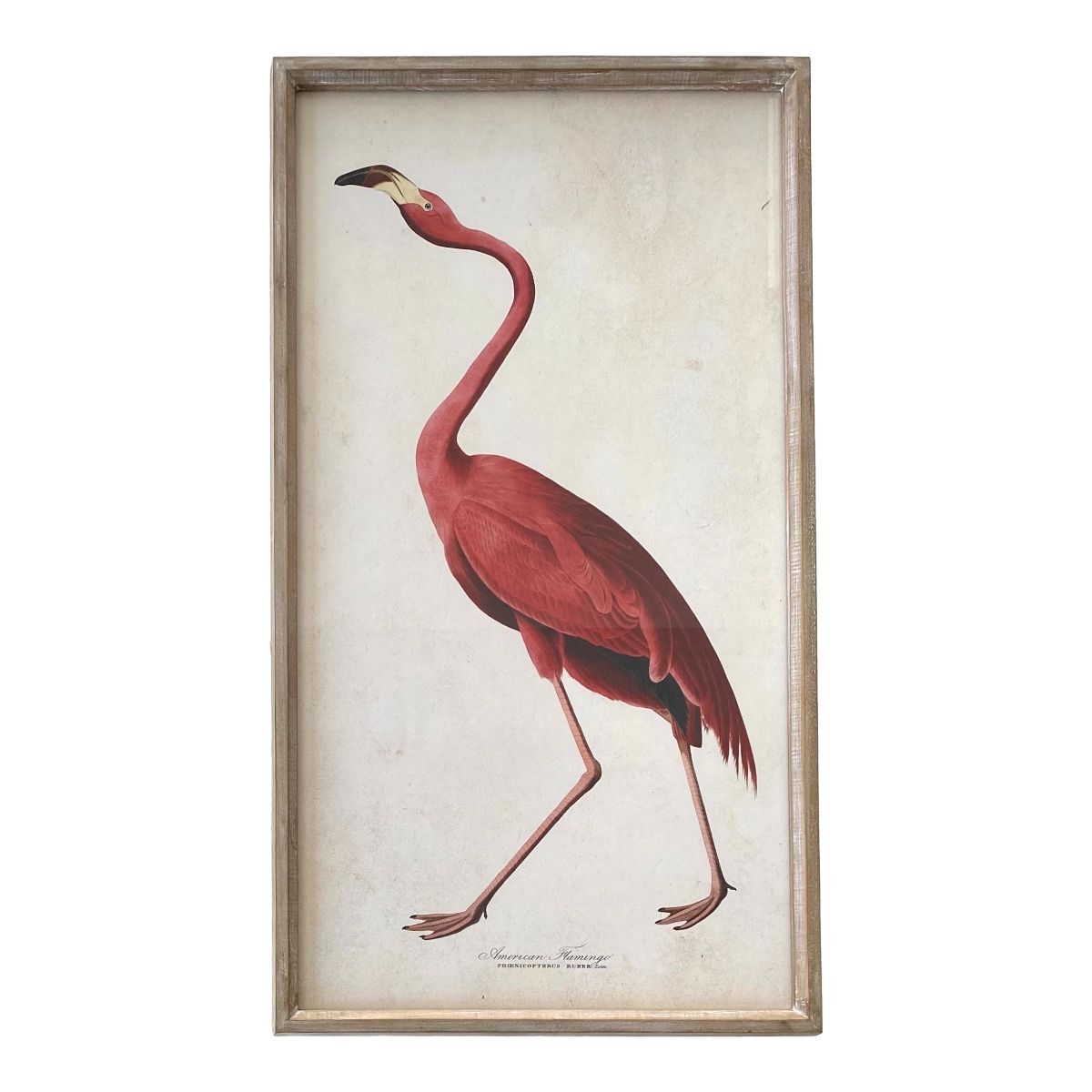 Add a bold pop of colour and timeless charm to your space with the Bird Framed Wall Art. Featuring a striking flamingo in classic ornithological illustration style, this framed print combines natural elegance with vintage artistry. Complete with a wooden frame in a weathered finish, it's a bold yet elegant piece that works wonderfully as a standalone piece or as part of a curated gallery wall. Ideal for living areas, hallways, bedrooms or studies.