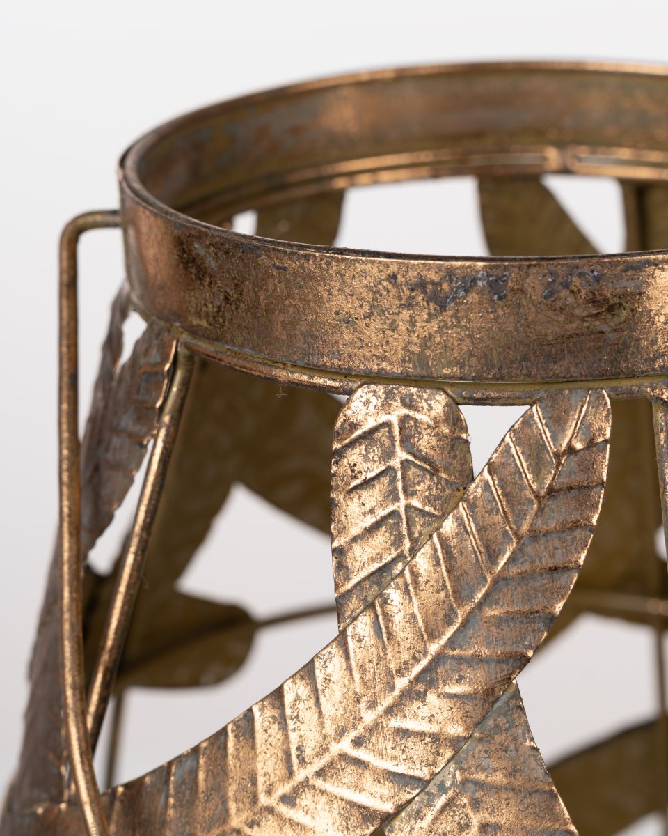 Perfect for adding ambient lighting to living rooms, patios, entryways, or styled vignettes, the Golden Leaf Lantern brings a touch of natural charm and warm metallic glow to any setting.
