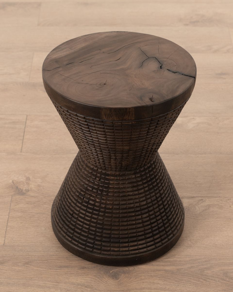 The Guilloche Diabolo Stool from our Ebony Collection makes a beautiful addition to both contemporary and classic interiors. Featuring an hourglass shape with a carved, textured finish, it's an ideal accent piece that's also functional. The stool is perfect for lounging areas, verandas, or bush lodges, and effortlessly completes any space.