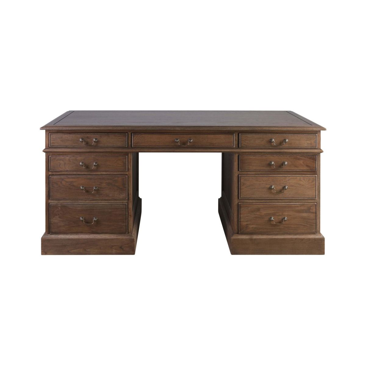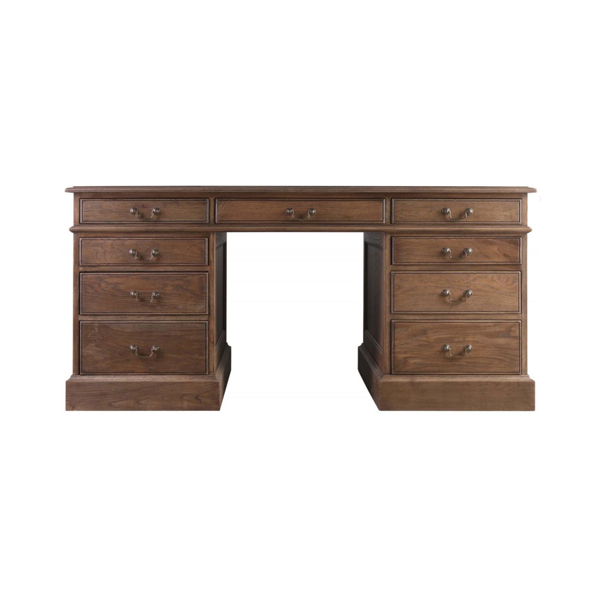 HAMPSHIRE desk is a timeless addition to any home office or study. This classic design has been a part of our collection since 1989, with its elegant craftsmanship and attention to detail. English Country Style (ECS) embodies simplicity and quality, with a focus on wood grain and linear details. The use of Oxford borders, panelling, and practical handles highlights the fine craftsmanship of this piece. Slatted wood is another characteristic of this style, adding a touch of charm to any room. Craft your perfect workspace with HAMPSHIRE desk, a true embodiment of elegant simplicity and exceptional craftsmanship.