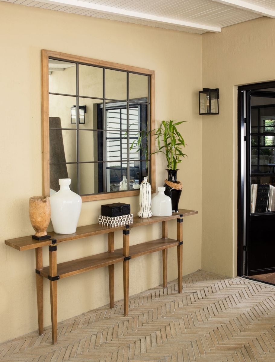 Add a touch of industrial elegance to your home with the Ebony Kuya mirror from our Ebony Collection. This sleek mirror is crafted with heavy-duty steel and fir wood for durability. Featuring clean lines and modern design to match any decor style from classic to modern. Create an impactful display above a sideboard or console.