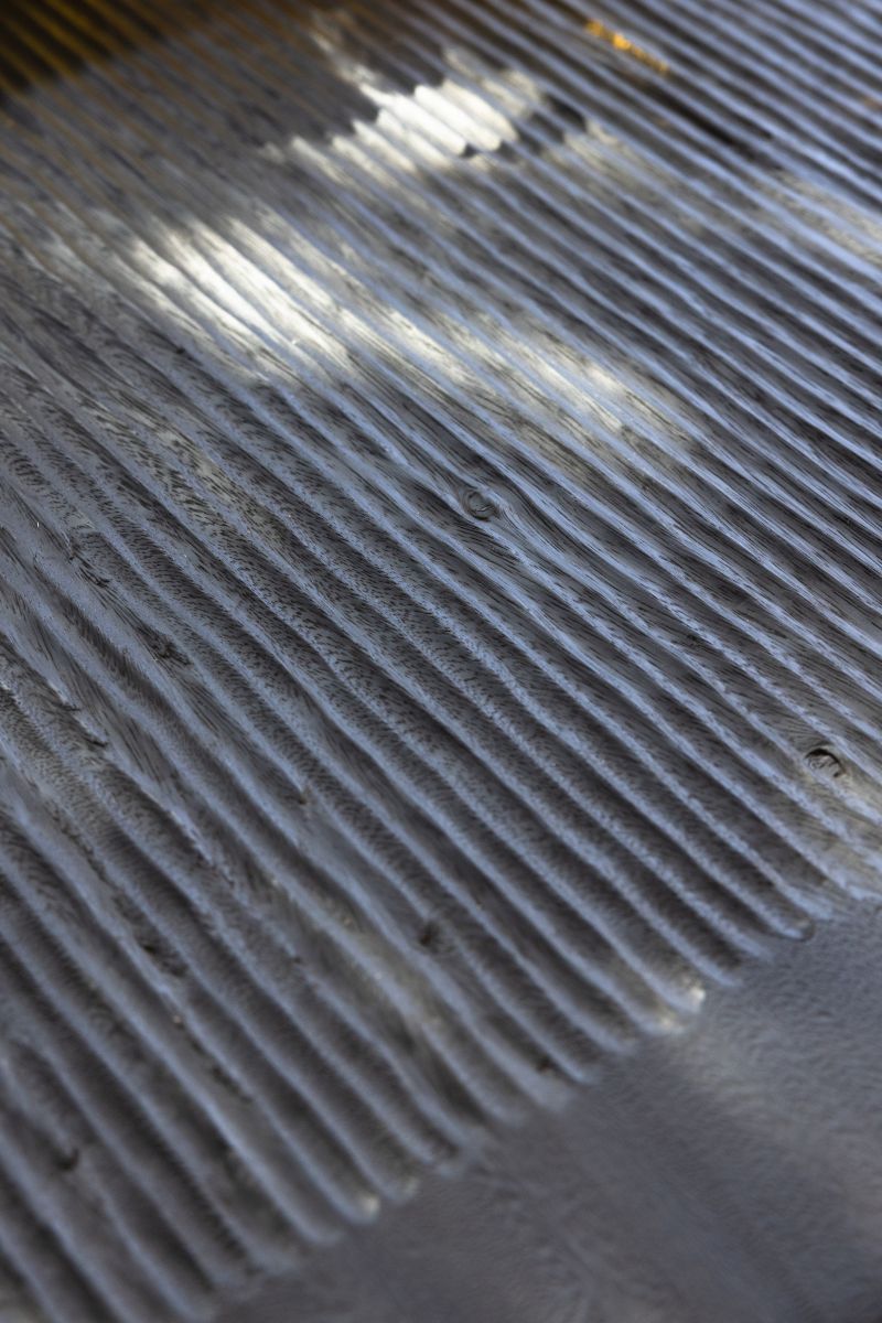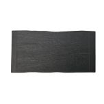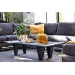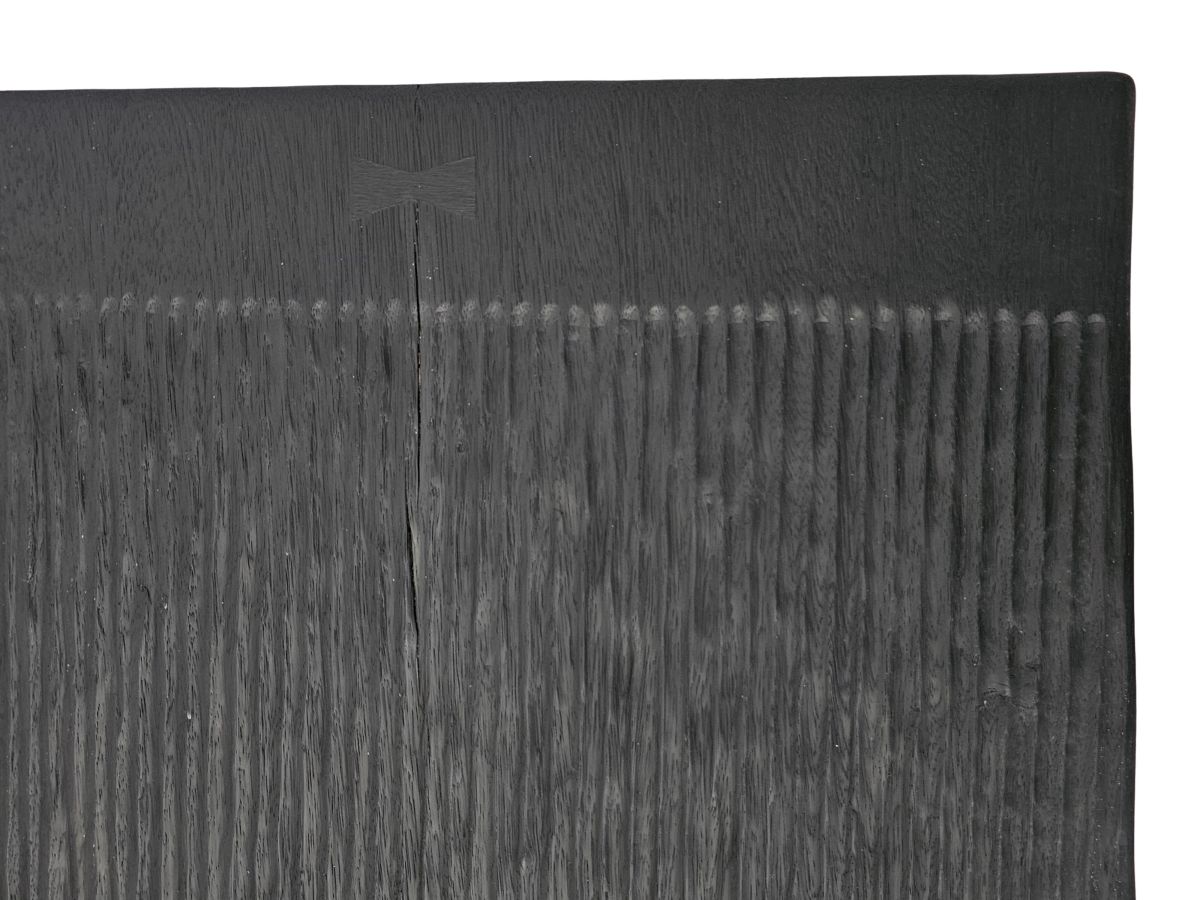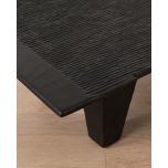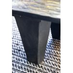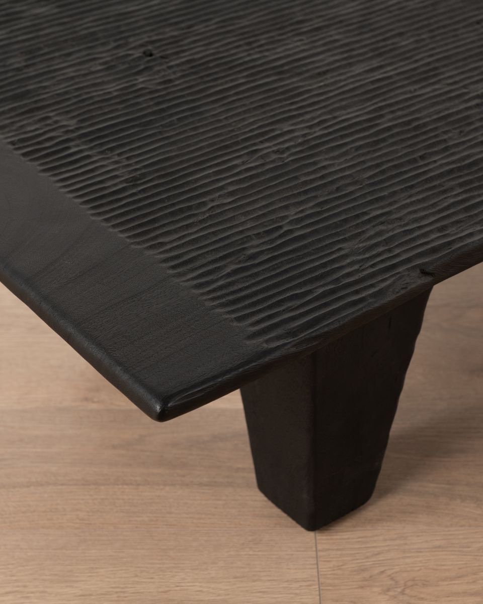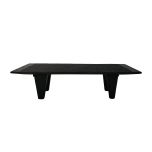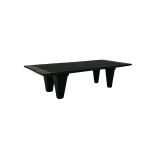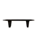 - Features a broad, rectangular top with softly tapered edges, resting on sturdy, carved cone-shaped legs