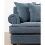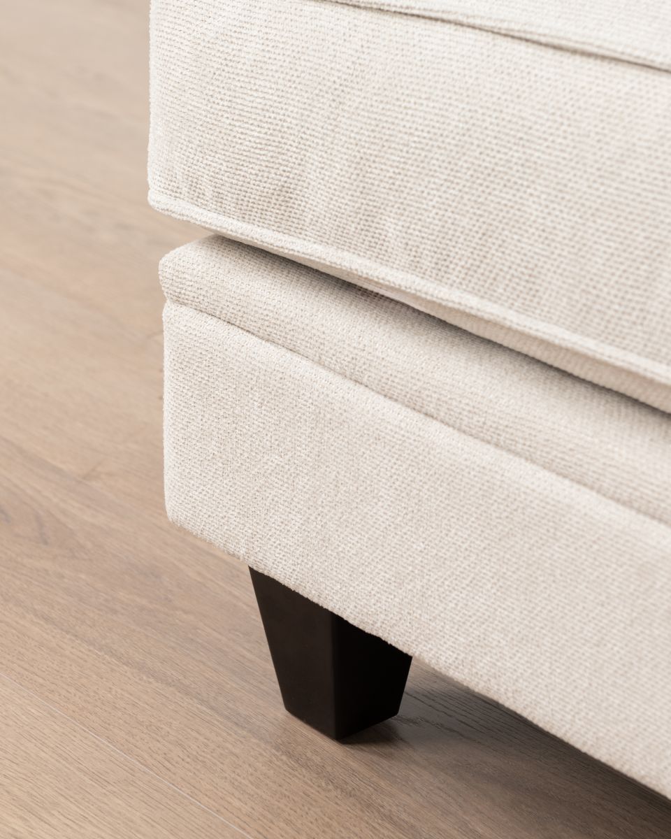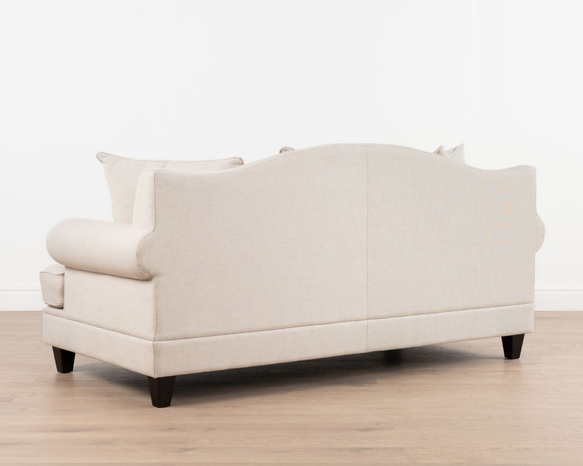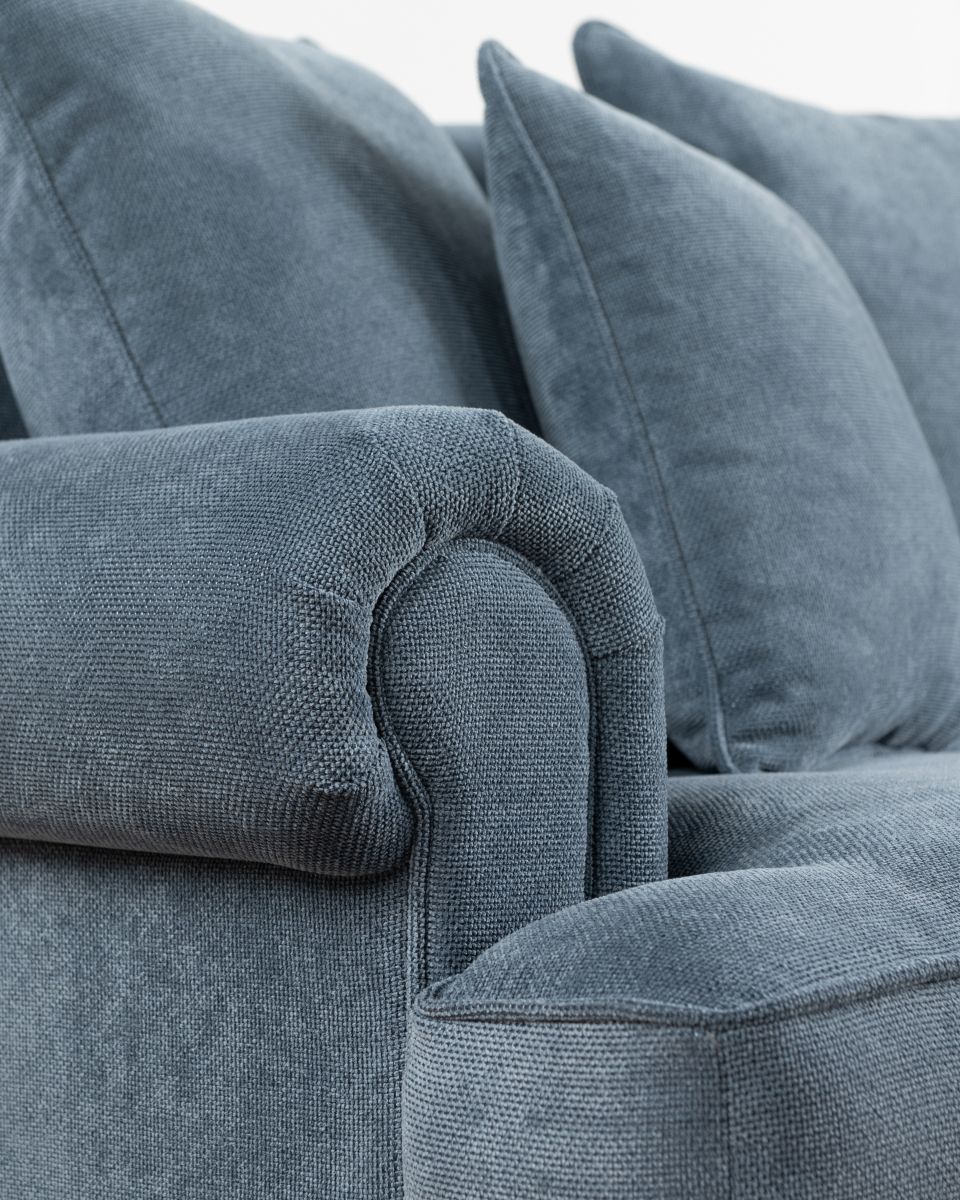 The Lucerne premium sofa is upholstered in luxury fabric and features a combination of low and high-density foam inners, topped with a feather layer for optimal comfort and durability. Designed with elegantly scrolled arms and a deep seat, this sofa is the perfect fusion of modern and classic. The generous cushions provide ample seating, while the durable construction ensures long-lasting support.
