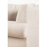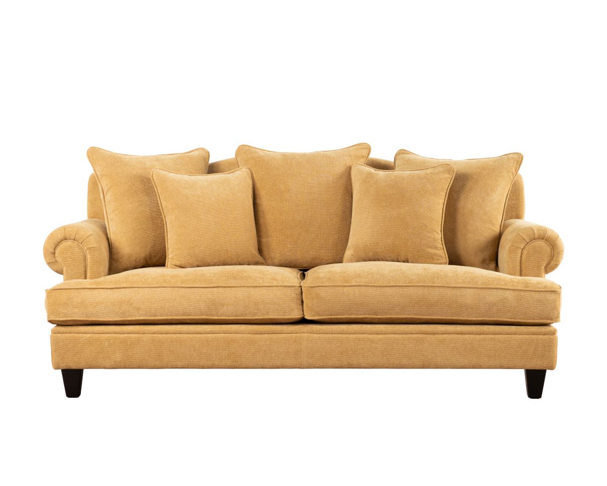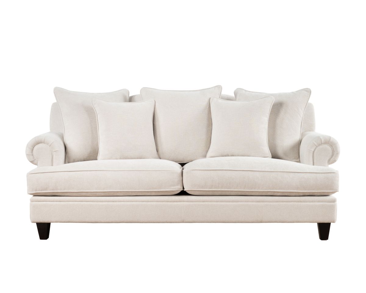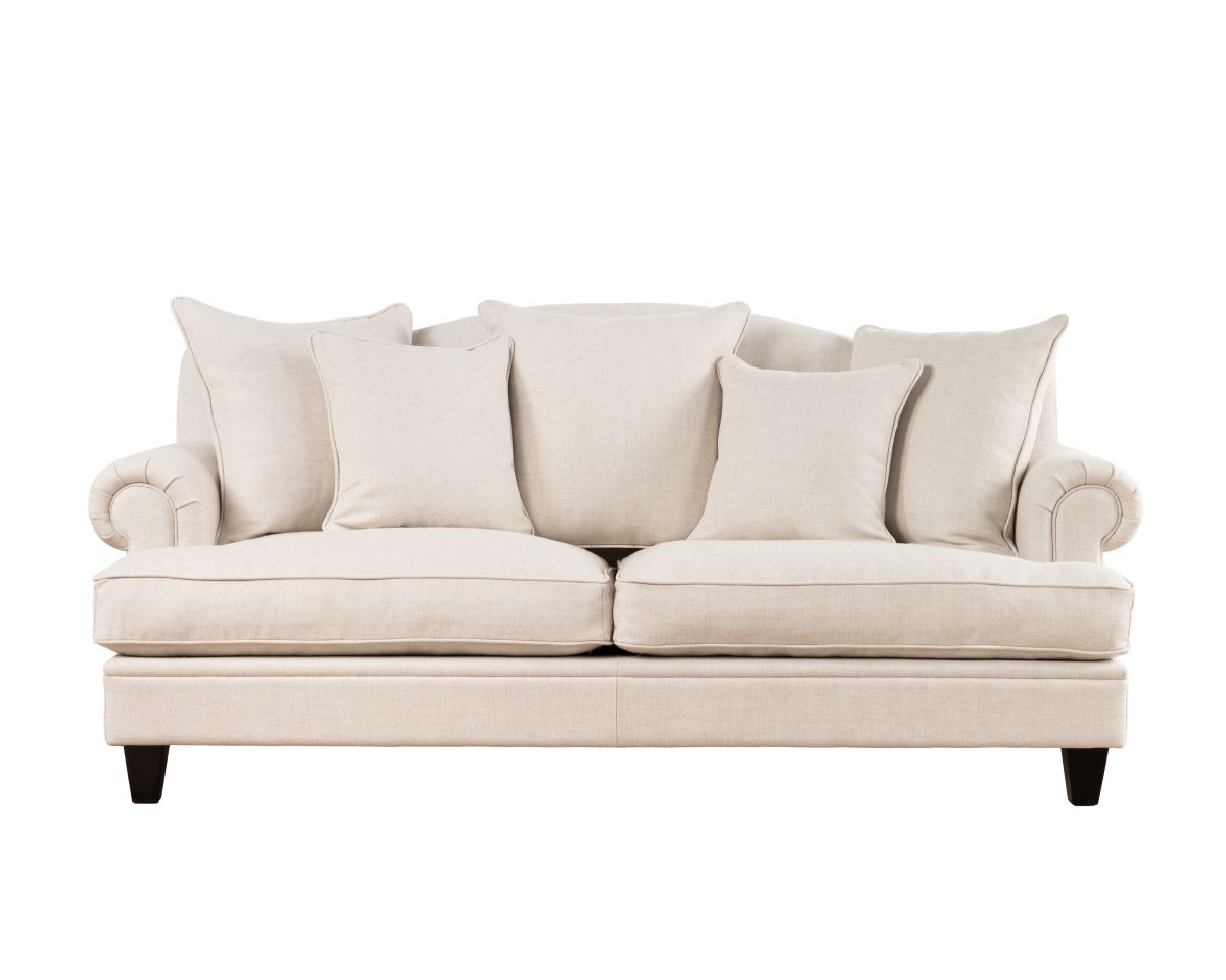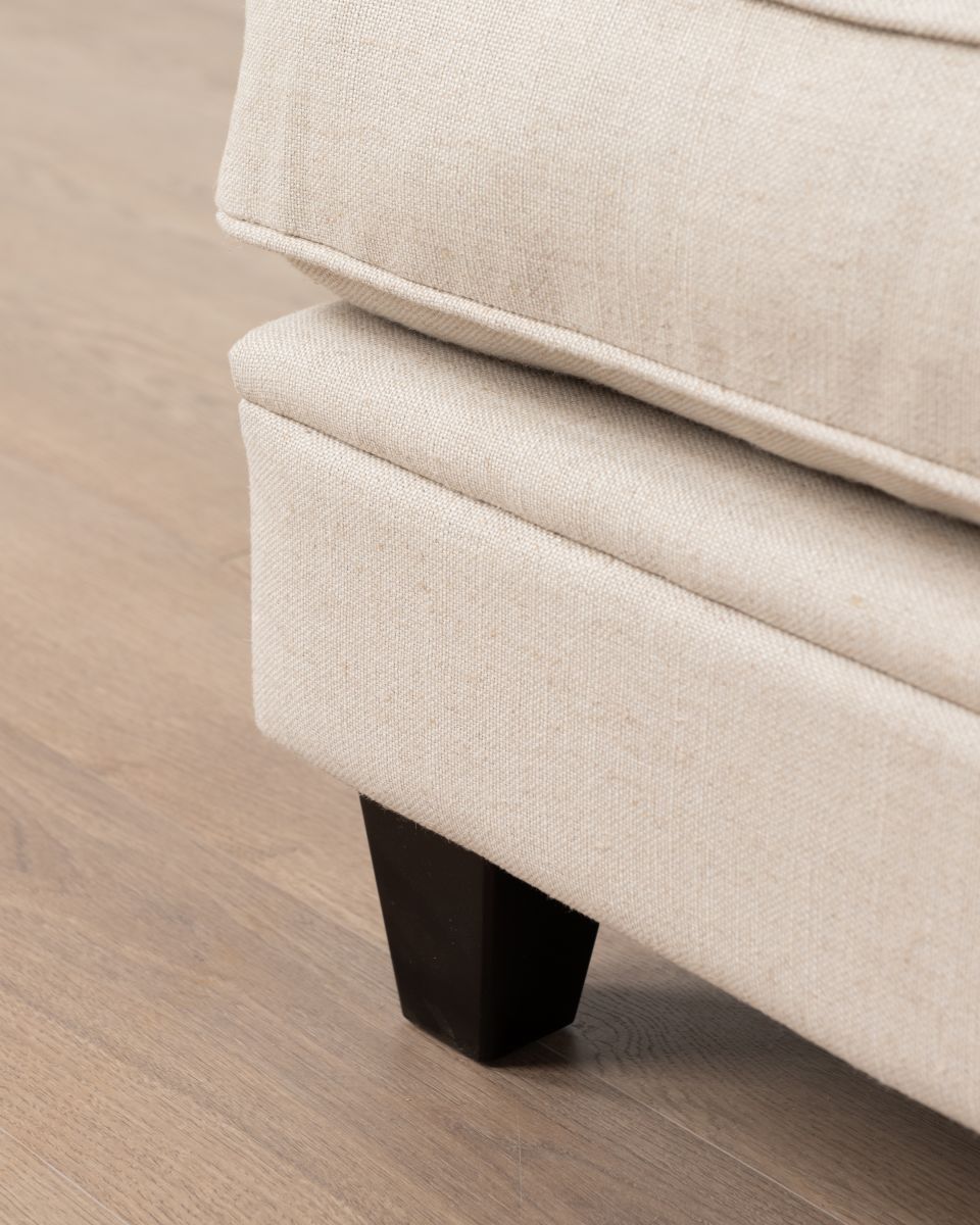 The Lucerne premium sofa is upholstered in luxury fabric and features a combination of low and high-density foam inners, topped with a feather layer for optimal comfort and durability. Designed with elegantly scrolled arms and a deep seat, this sofa is the perfect fusion of modern and classic. The generous cushions provide ample seating, while the durable construction ensures long-lasting support.