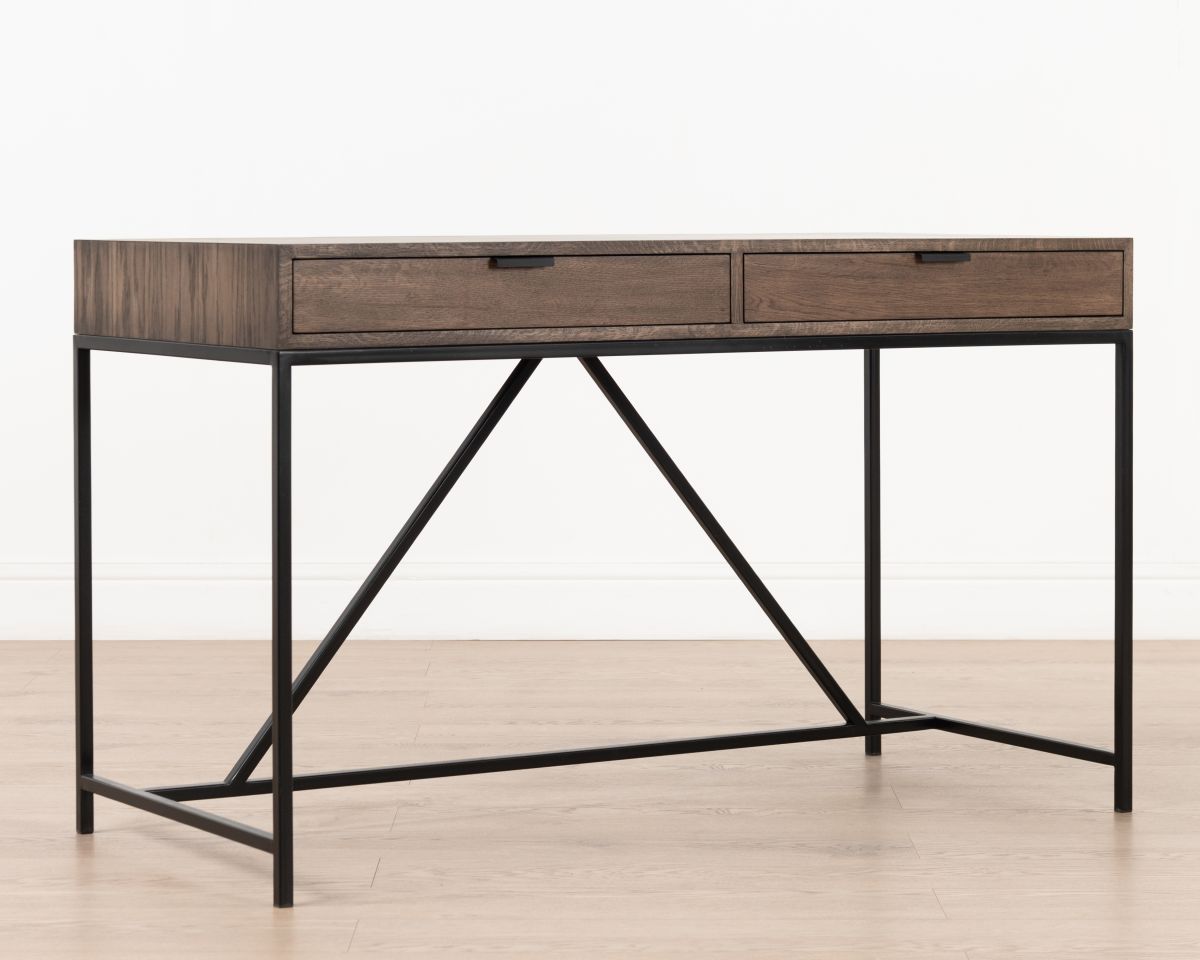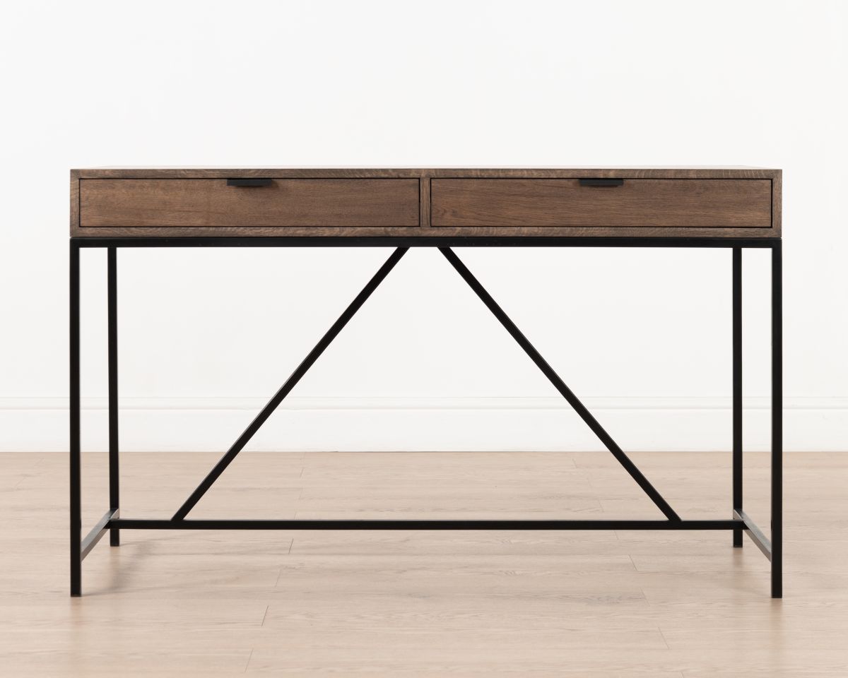 Whether you run your business from home or just need a spot to craft DIY masterpieces, the Manhattan 2 drawer desk is an ideal anchor for your workspace. It is beautifully constructed, a steel base in matt black is topped with oak which has an antique weathered finish. The appealing modern design of this desk will complement any workspace.