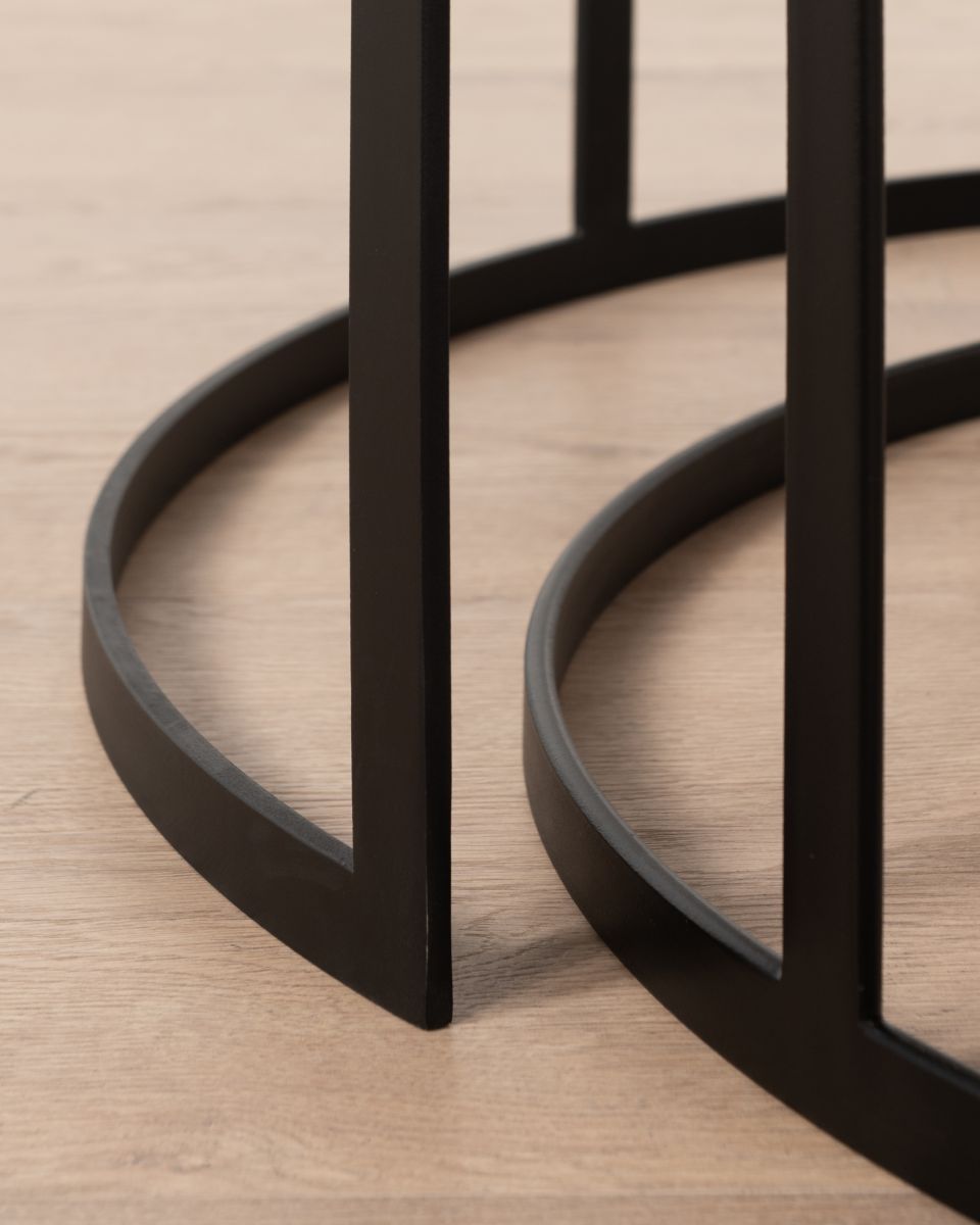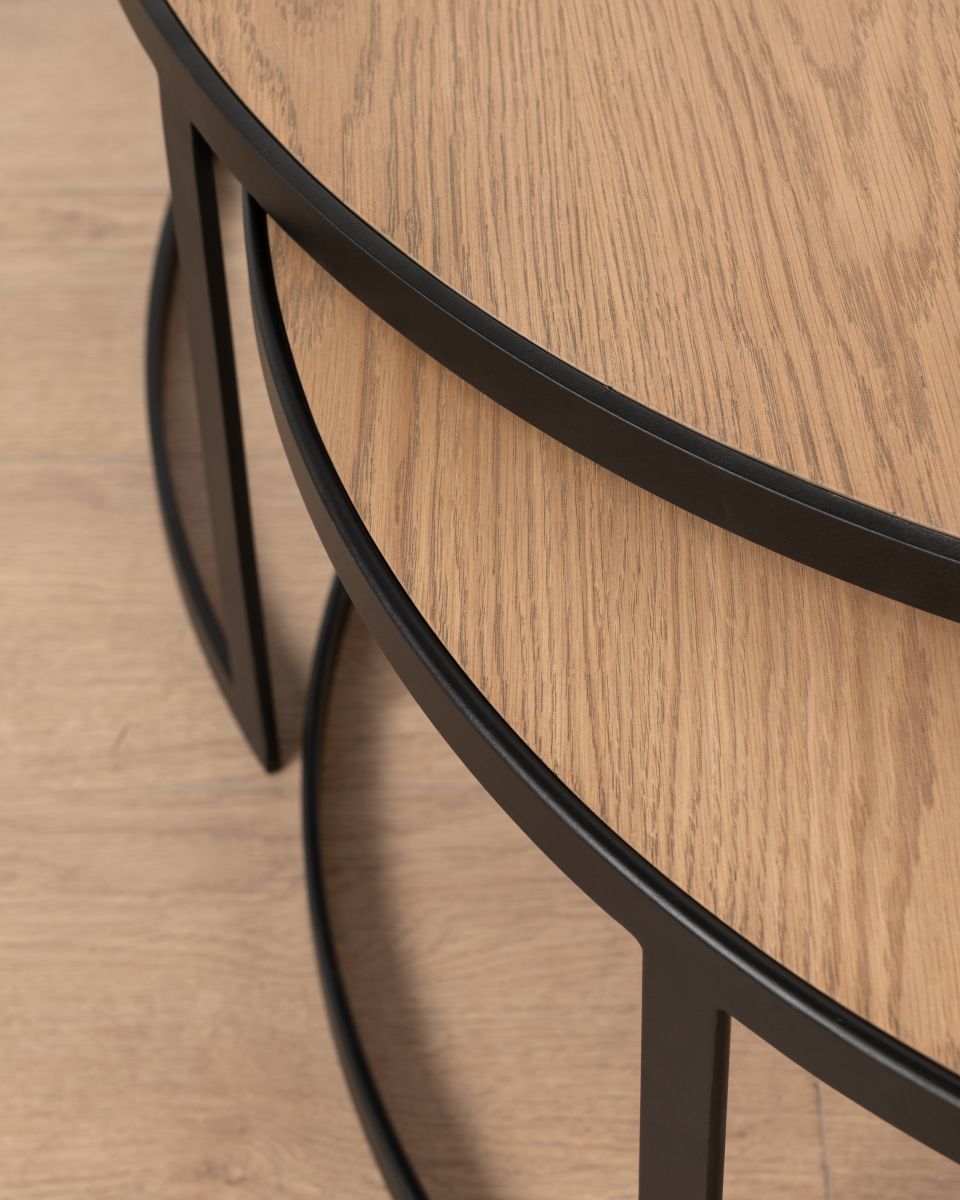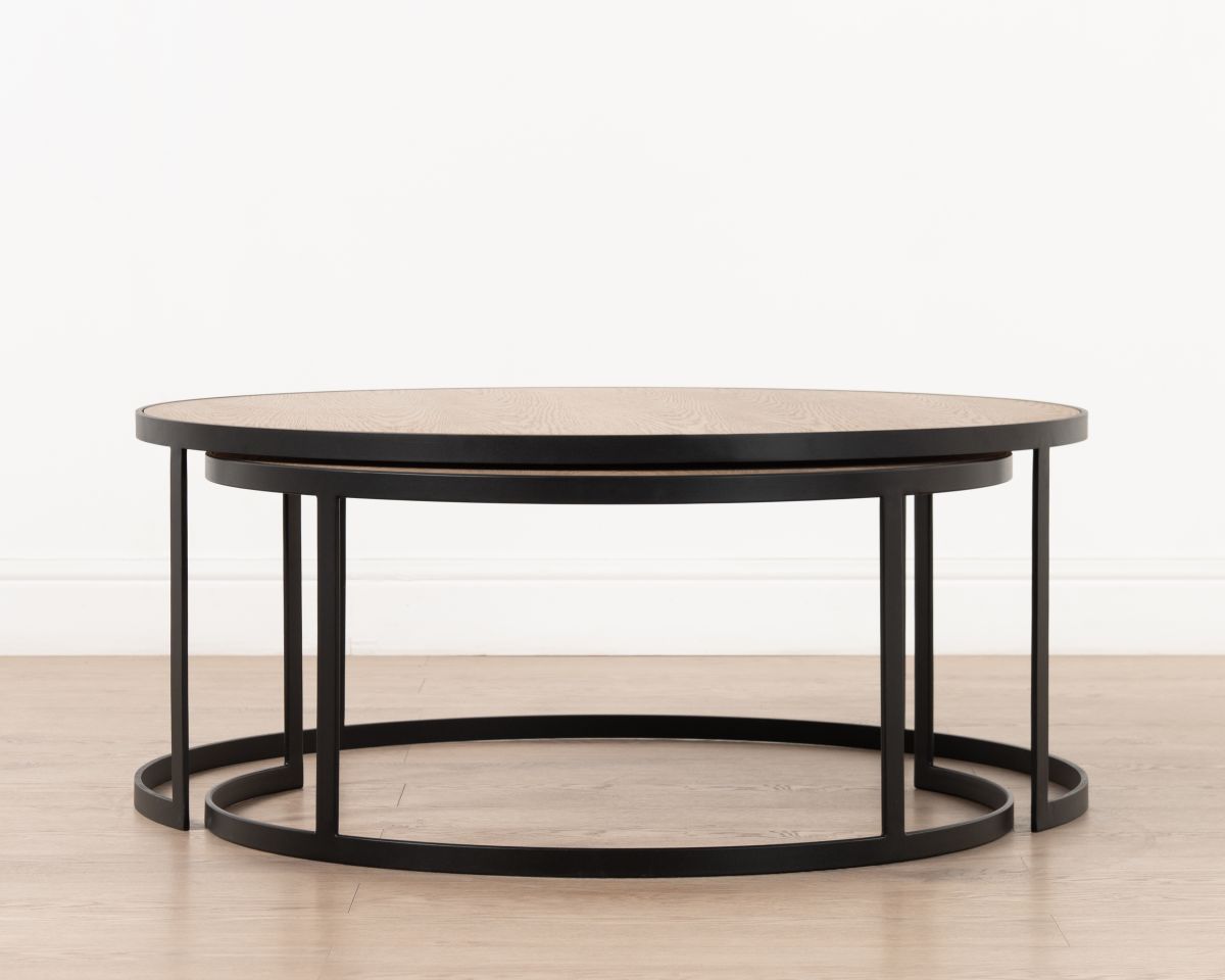Introducing our new Manhattan nesting coffee table, crafted exclusively in our Cape Town factory. Crafted with a beautiful, weathered oak top and a sleek black metal frame, this stylish and functional piece is sure to add a touch of sophistication to any living room. With its nesting design, it provides versatility and convenience for your daily use. Order now to enjoy the perfect blend of quality craftsmanship and contemporary design.