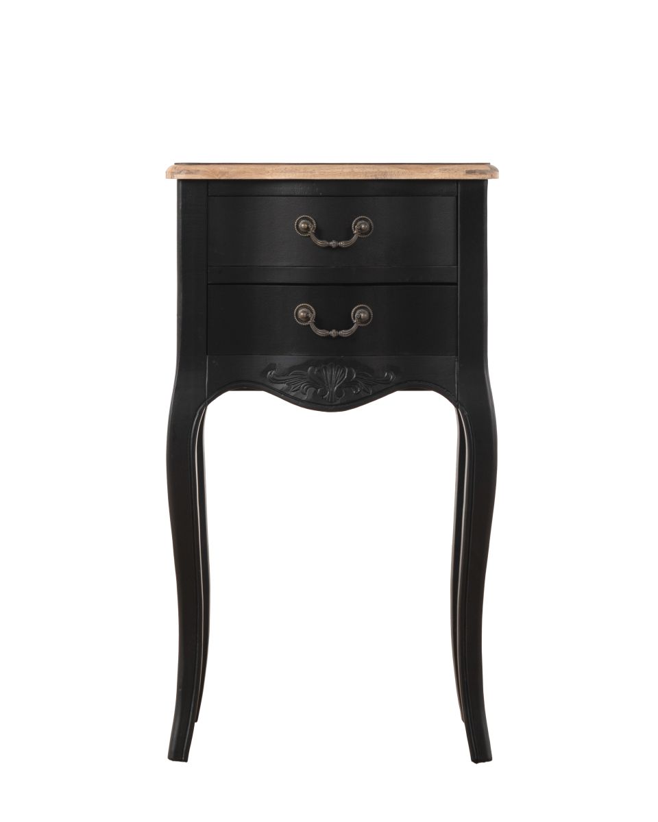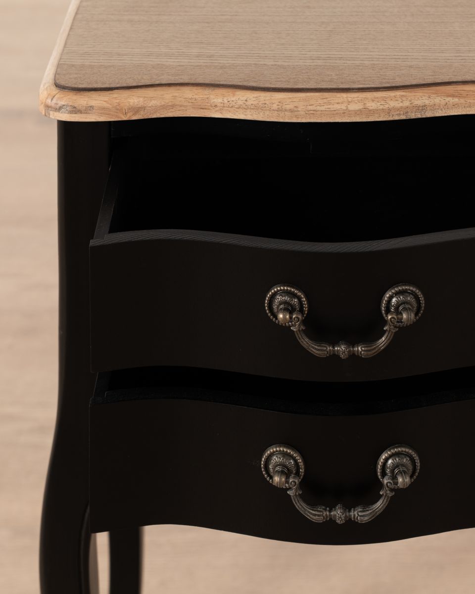 Bring a bit of French country character to your master suite or guest room with the Château Marie bedside table, crafted from Pine in a distressed black finish.