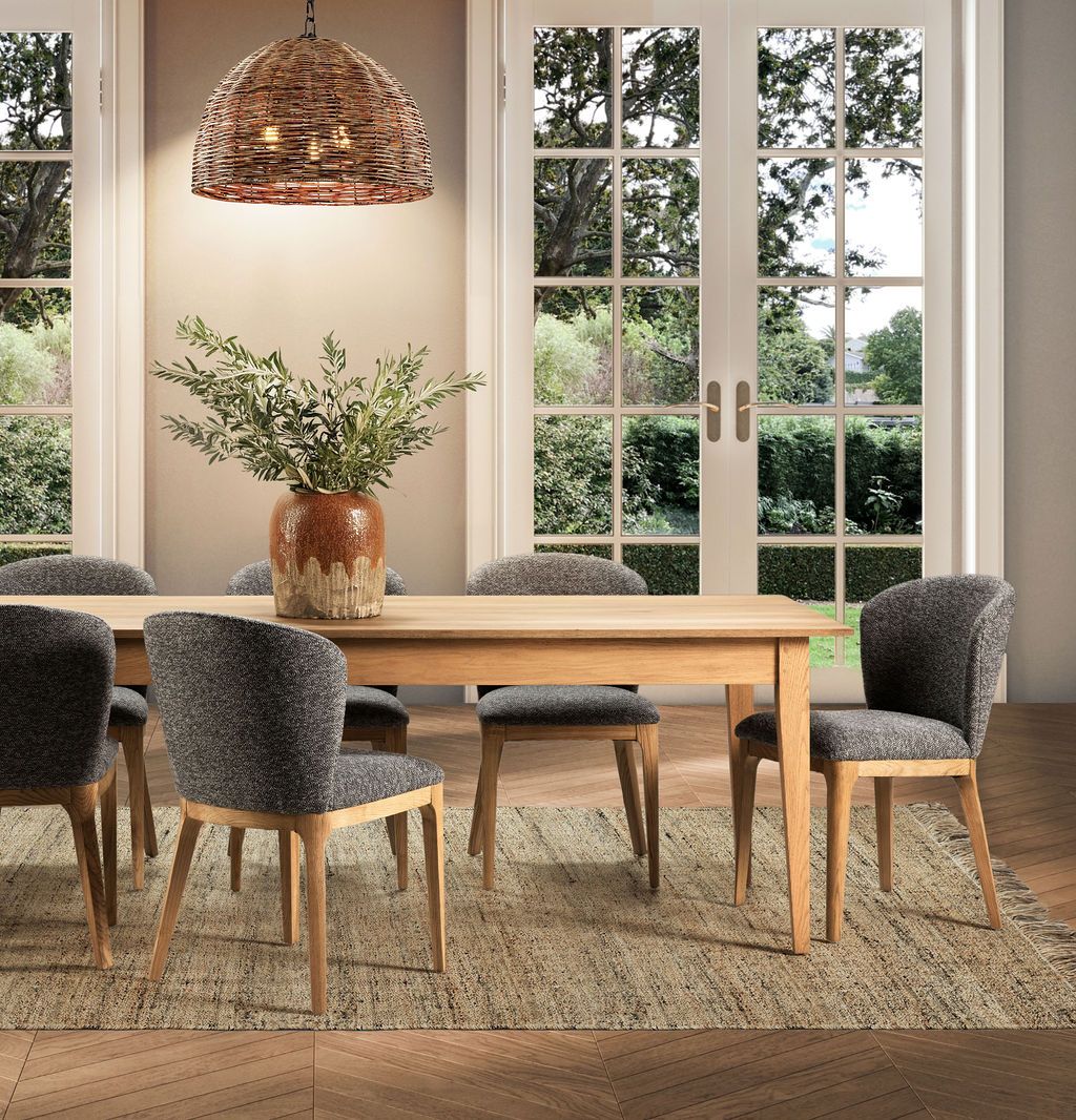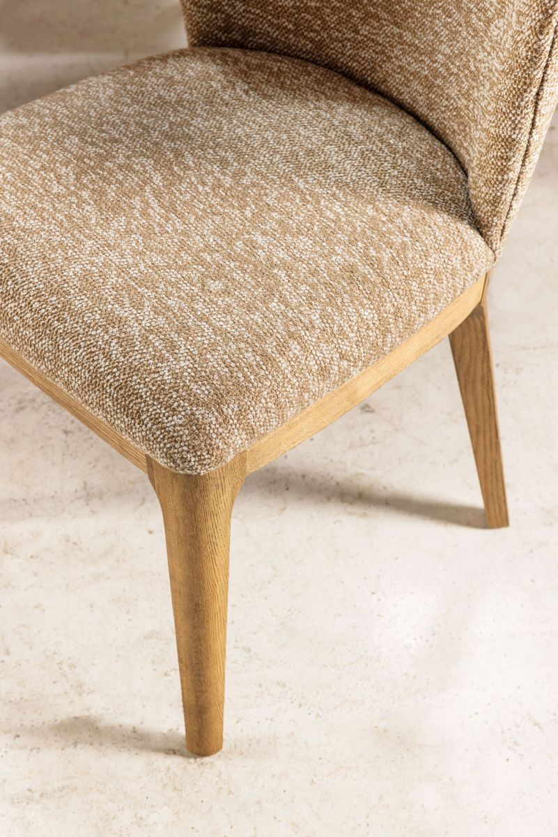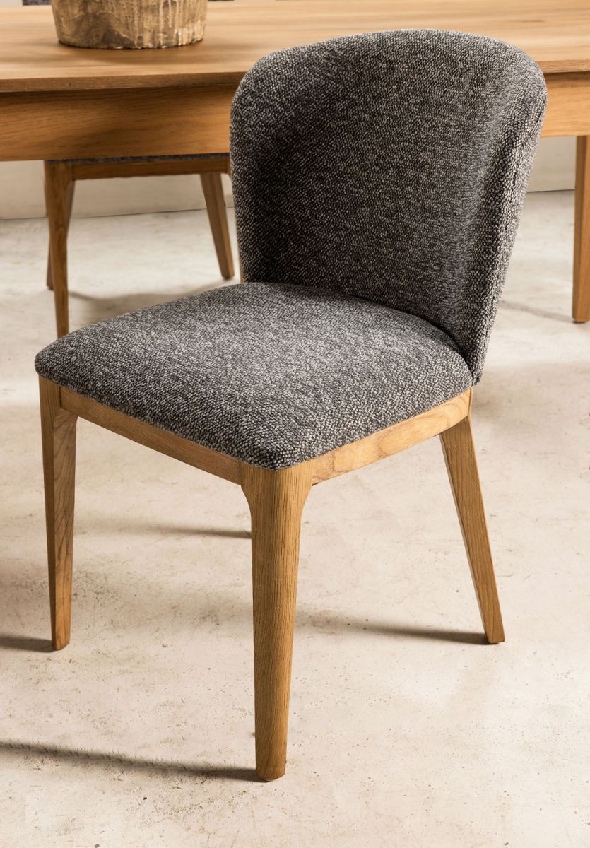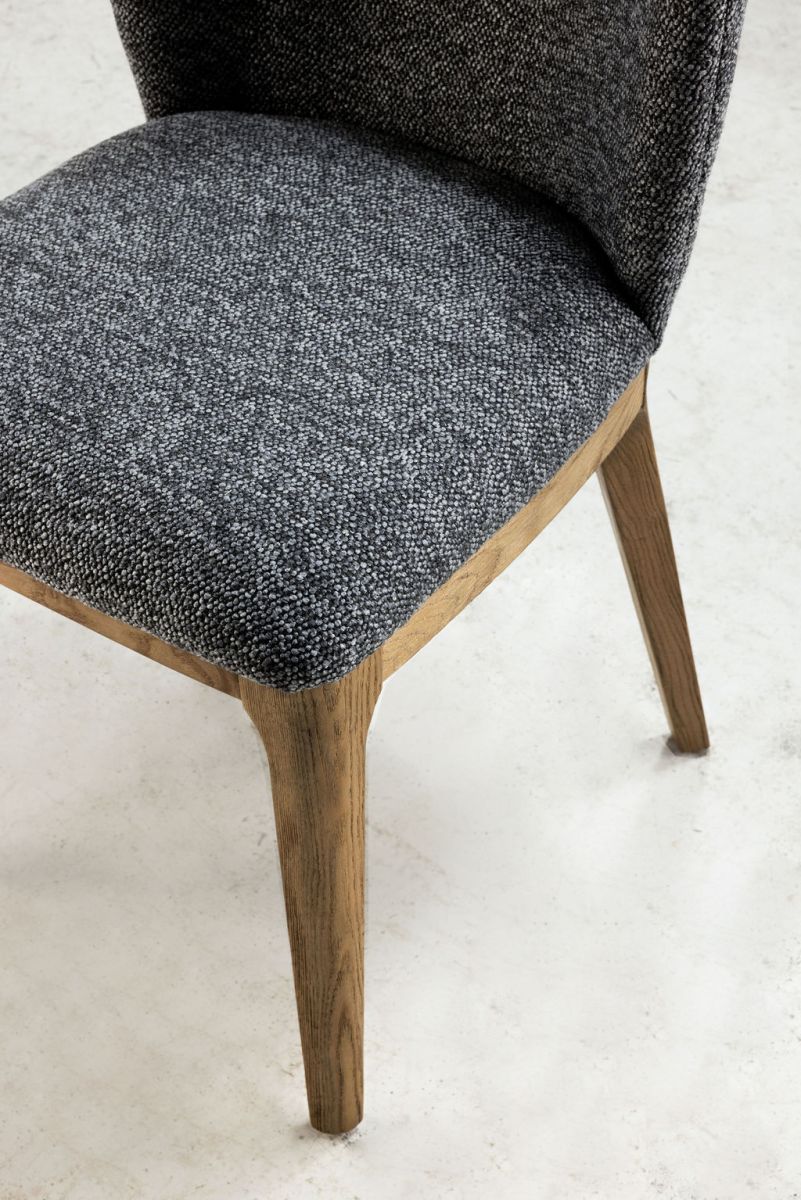 The Ebony Musa dining chair adds a touch of glamour to your dining space with its sleek design and versatile appeal. Available in two elegant colour options - natural and charcoal - this dining chair is crafted from 100% polypropylene boucle fabric, ensuring both durability and style. The on-trend boucle fabric enhances the chair's straightforward shape, bringing a rich texture to your dining area. Its compact form allows for numerous chairs to fit around any table, making it perfect for entertaining. Whether paired with a glass-top table or a simple wooden table, the Musa dining chair effortlessly adds a modern edge while providing comfort and luxury.