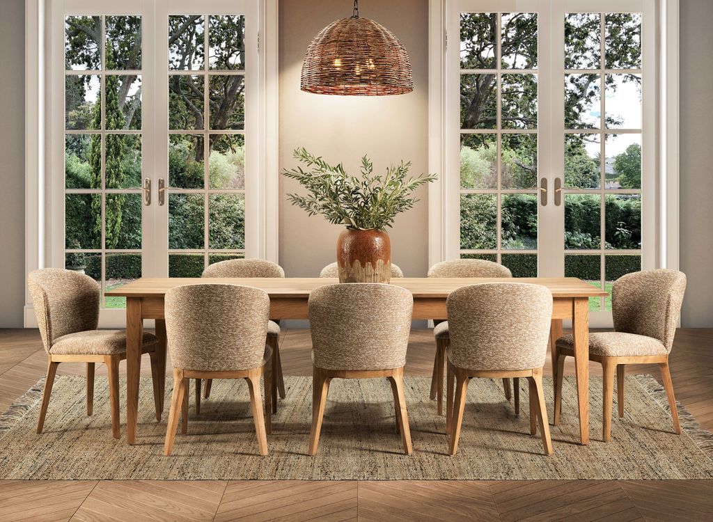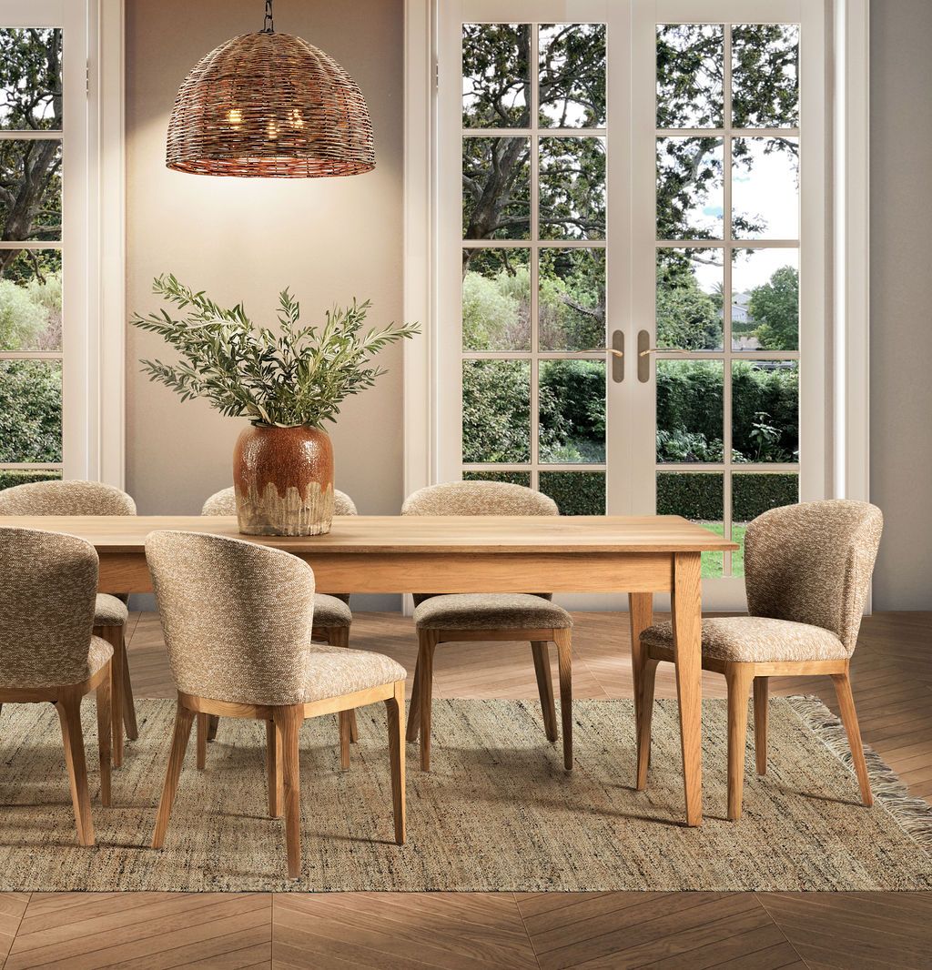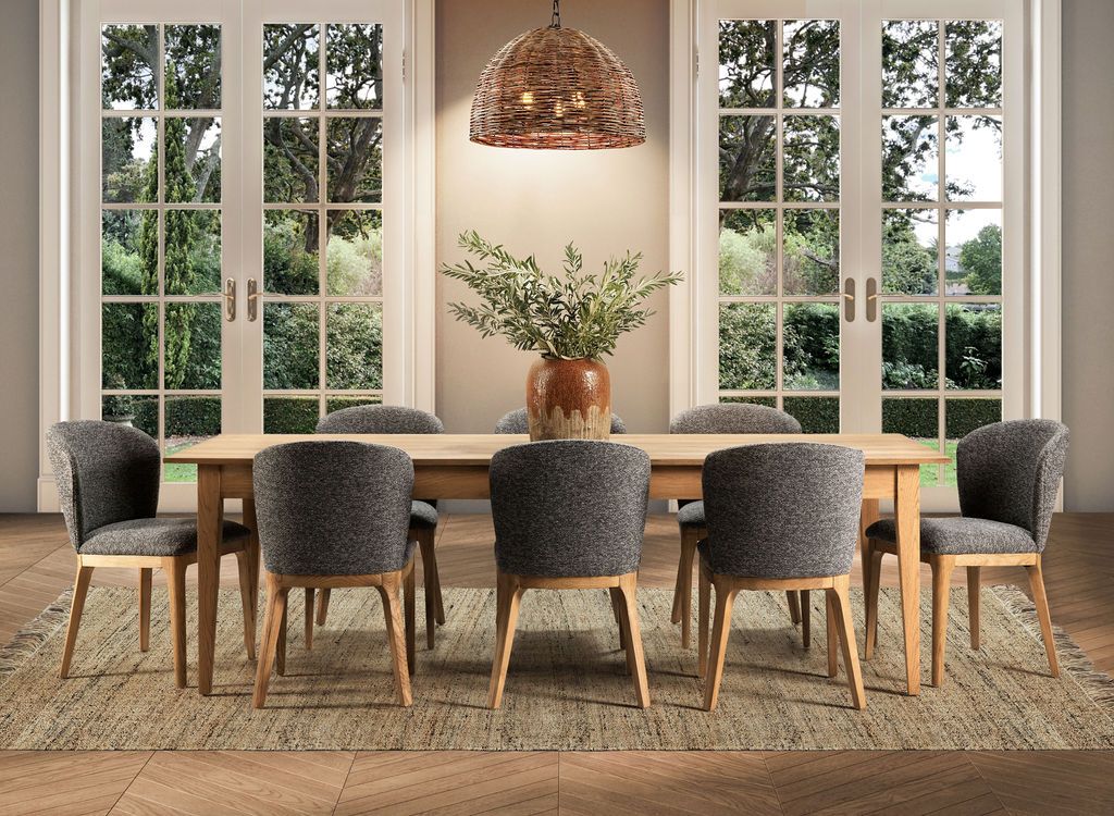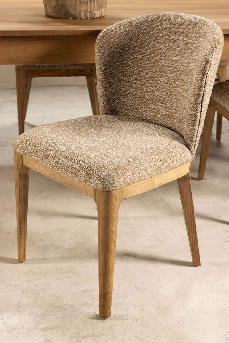 The Ebony Musa dining chair adds a touch of glamour to your dining space with its sleek design and versatile appeal. Available in two elegant colour options - natural and charcoal - this dining chair is crafted from 100% polypropylene boucle fabric, ensuring both durability and style. The on-trend boucle fabric enhances the chair's straightforward shape, bringing a rich texture to your dining area. Its compact form allows for numerous chairs to fit around any table, making it perfect for entertaining. Whether paired with a glass-top table or a simple wooden table, the Musa dining chair effortlessly adds a modern edge while providing comfort and luxury.