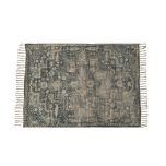 - Features muted patterns in earthy tones and tassled edges, evoking a vintage look while allowing its traditional influences to shine