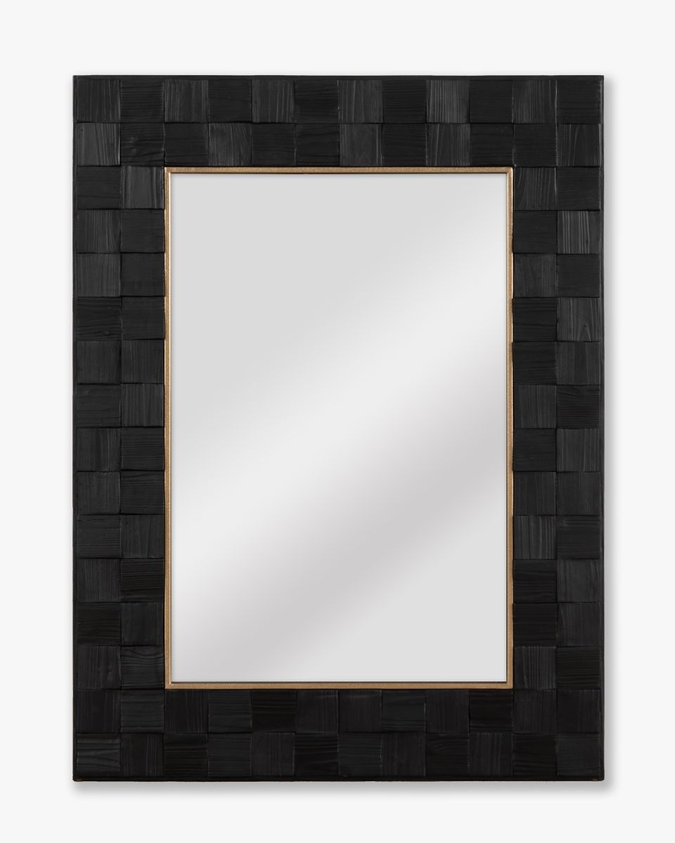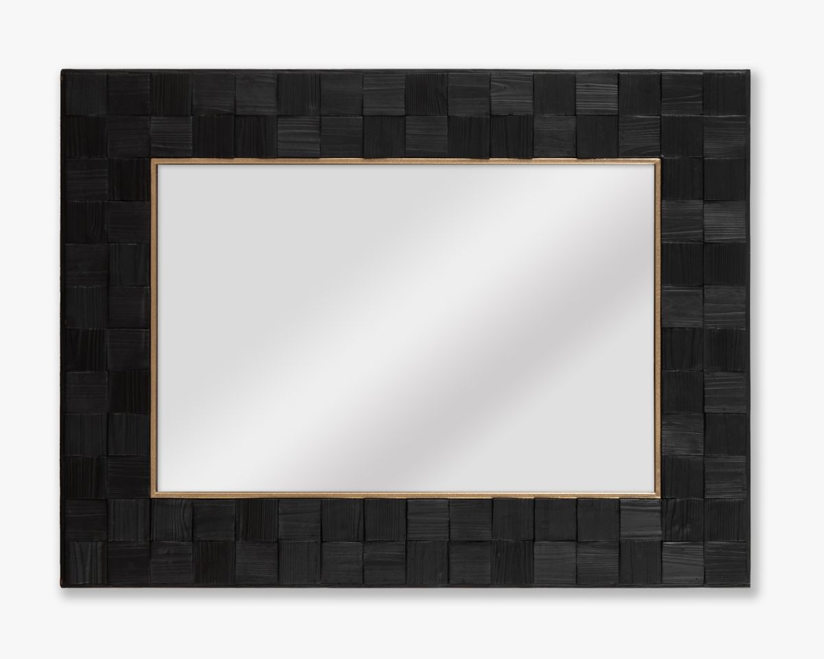 The Obsidian Mirror brings texture and tonal richness to the Ebony Collection. Framed in black-finished fir wood, its subtly varied surface adds quiet movement within a deep, inky palette. The layered squares create interest, giving the piece a refined, architectural edge.