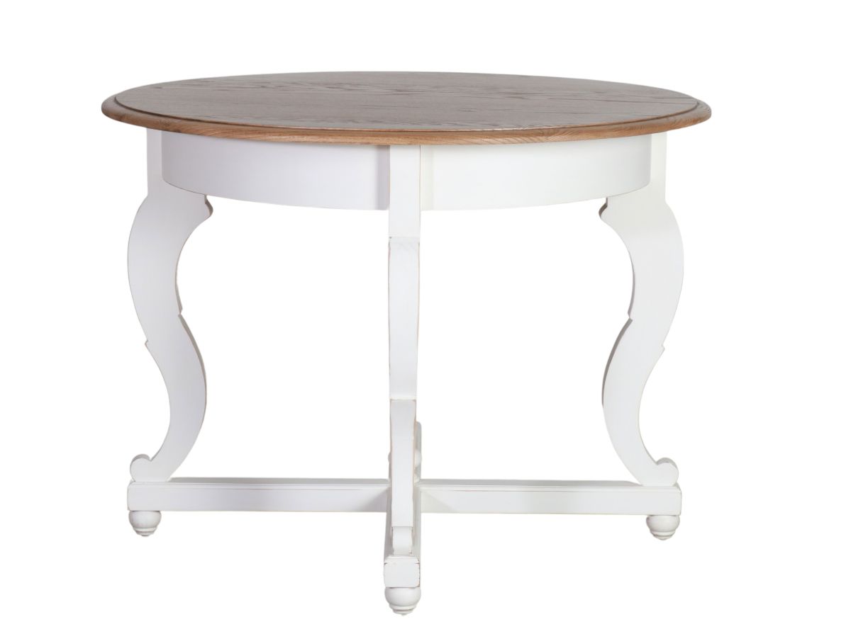 Anchor your entrance hall or an area in your living room in effortless style with our Montpellier Table. An impressive base gives this round Normandy Round table a smart silhouette for a contemporary or traditional dining room. (Shown here in Solid Weathered Oak top painted antique white base)