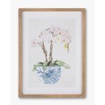 For a touch of timeless beauty, the Orchid Framed Wall Art is the perfect accent piece. Featuring an elegant watercolour-style illustration of delicate white orchids in a chinoiserie-inspired vase, the print brings serenity, style and botanical elegance to a space. Complete with a wooden frame in a textured finish, it's a refined piece that works wonderfully as a standalone piece or as part of a curated gallery wall. Ideal for kitchens, dining spaces, living areas, bedrooms or studies.